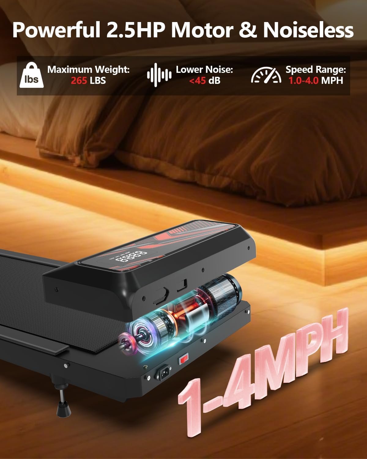Bring efficient, low-impact cardio into your home or office with this 3-in-1 Portable Walking Mat / Under-Desk Treadmill, powered by a 2.5 HP motor that stays remarkably quiet (under ~45 dB). Whether your goal is to walk, jog, or simply move while working, its flexible speed range and small footprint make it a powerful ally for daily activity.