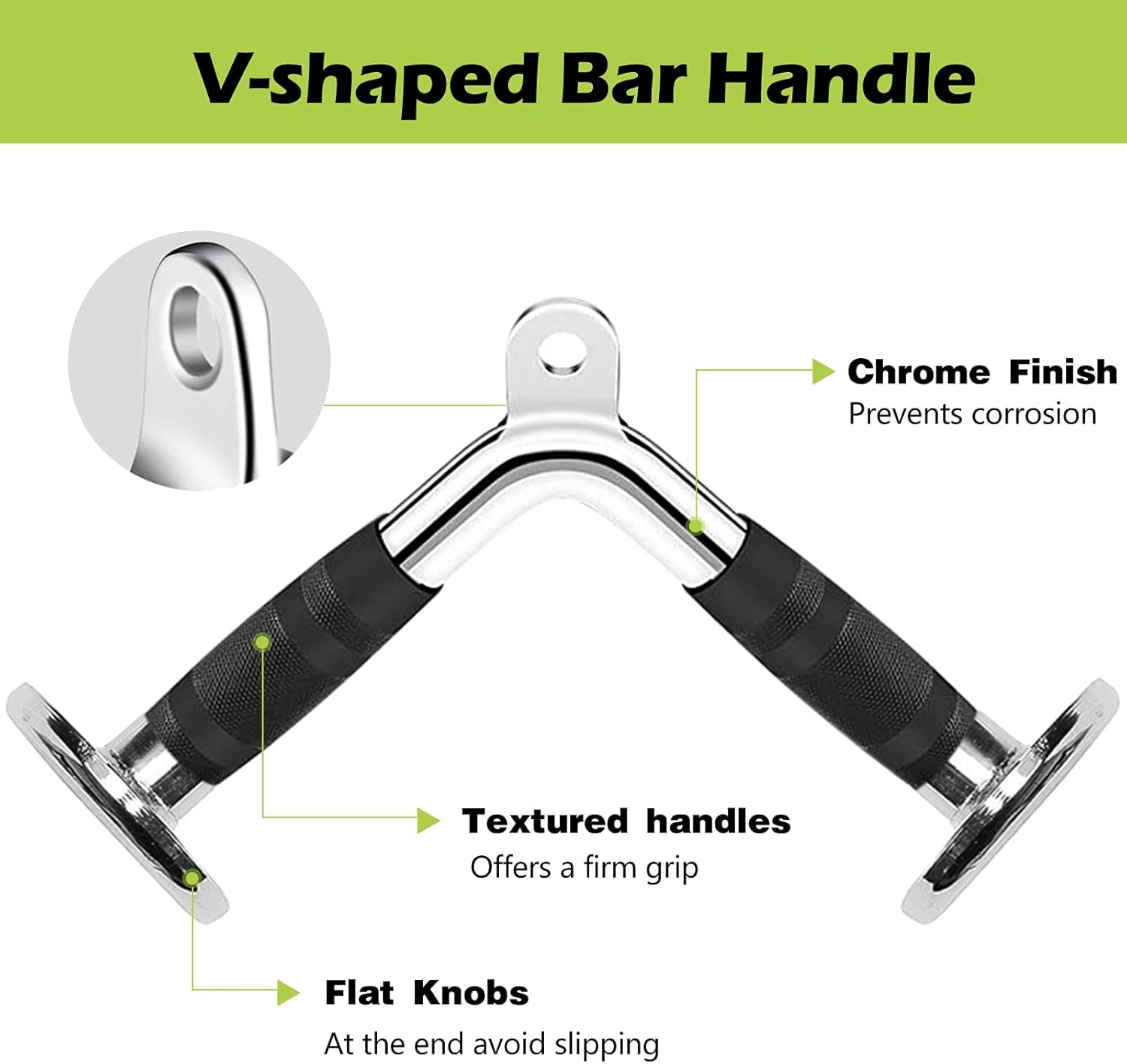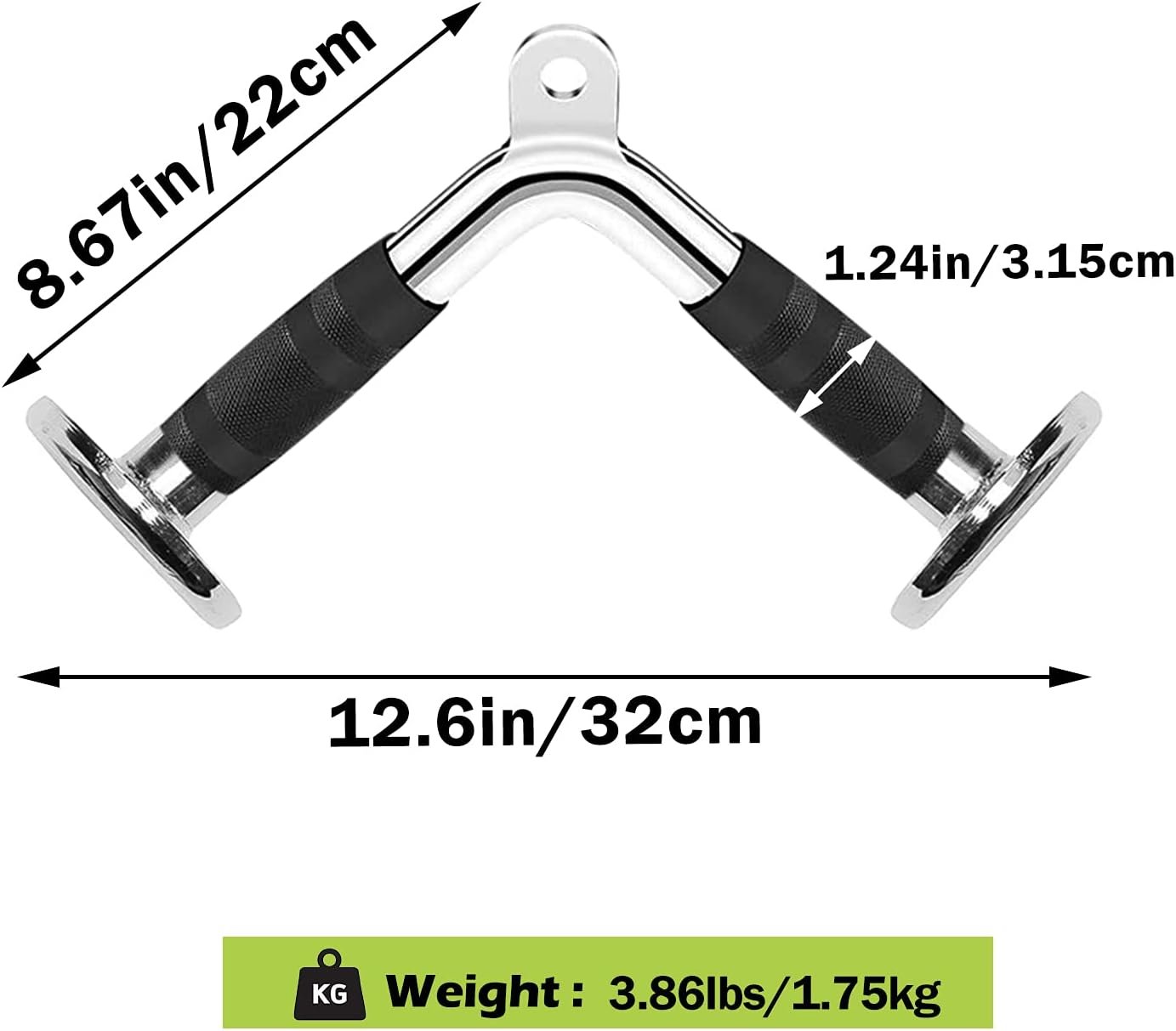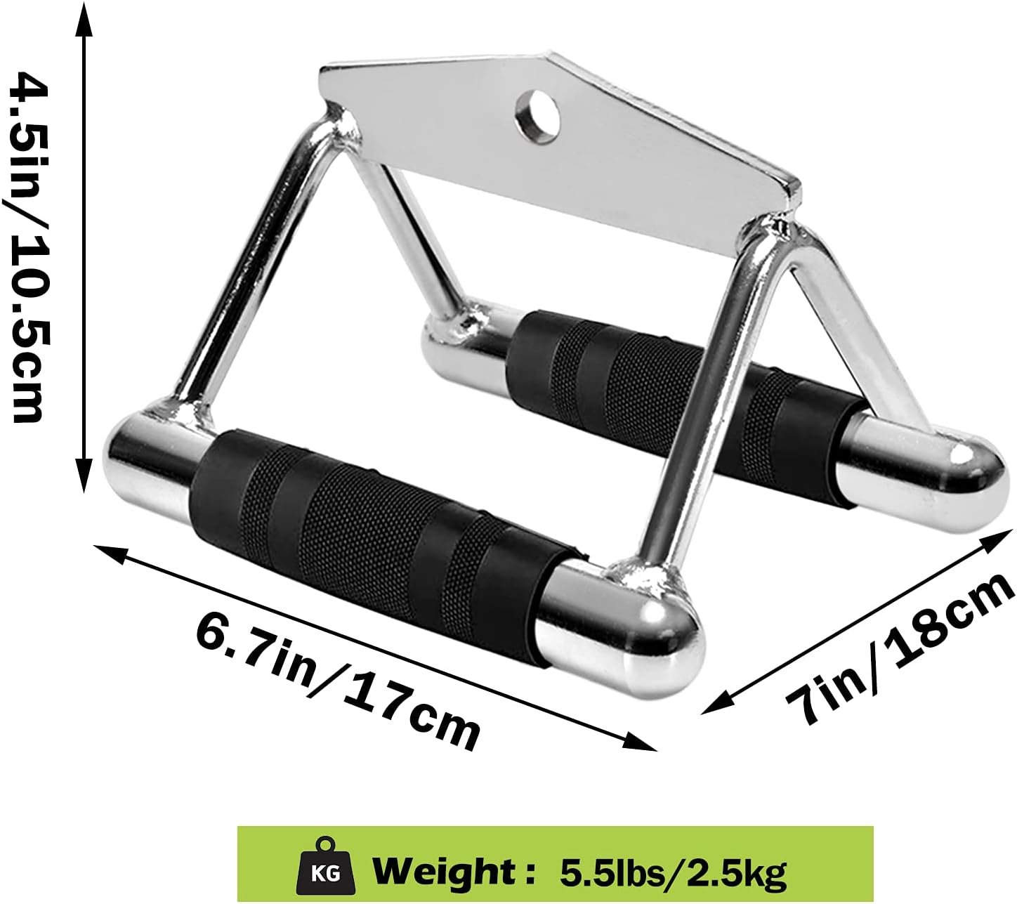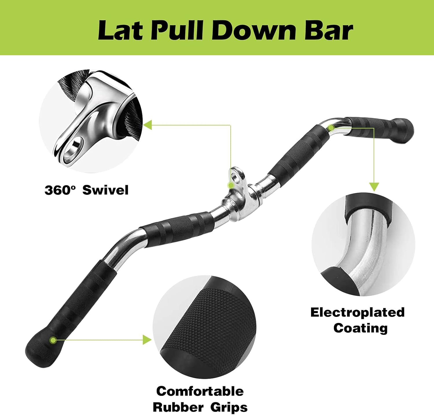 High-Strength Stainless Steel and Iron Construction: The lat bar is crafted from solid stainless steel with a polished chrome finish, combining durability with a textured rubber grip to help you maintain control during heavy pulls.