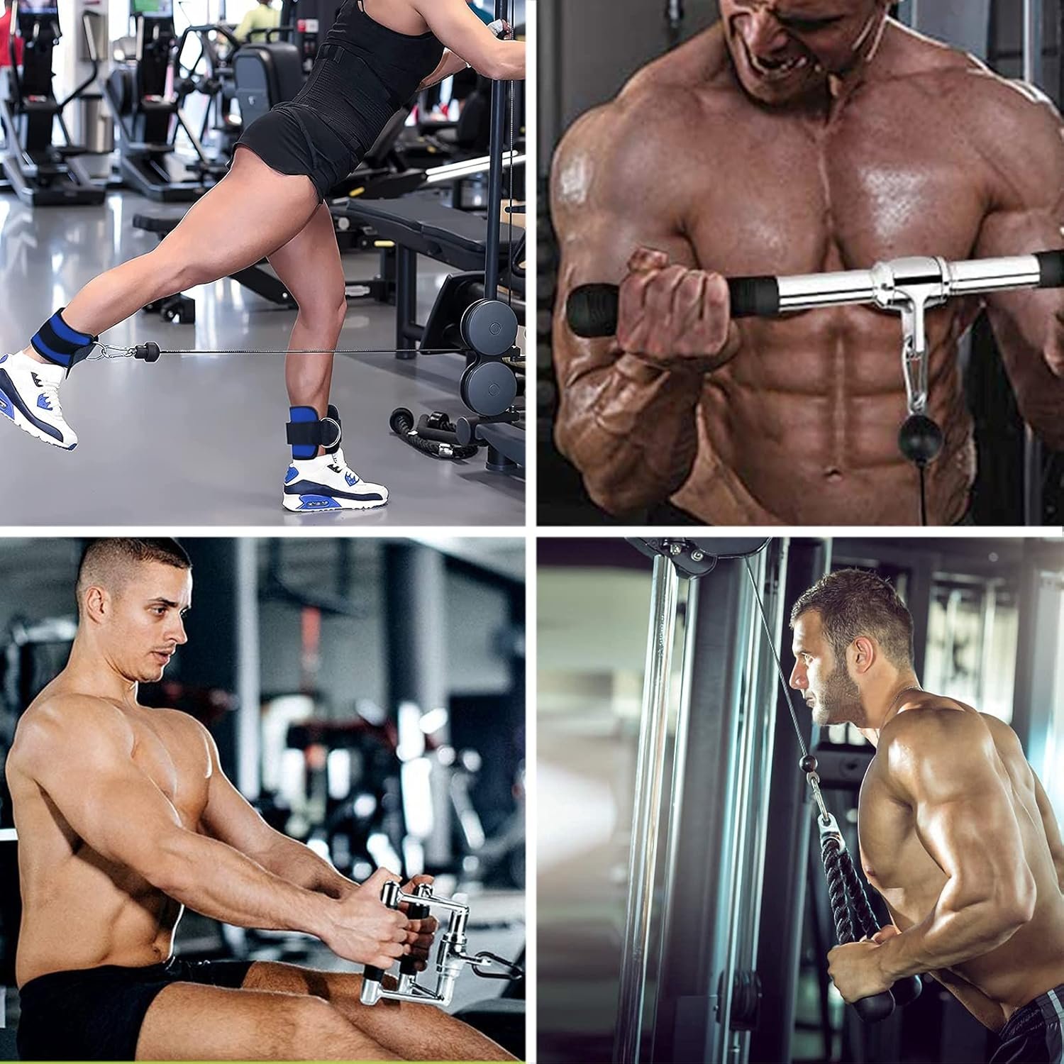 Ankle Straps: Included in the set, the ankle straps can be used for leg extensions, kickbacks, and other lower-body pulley exercises.