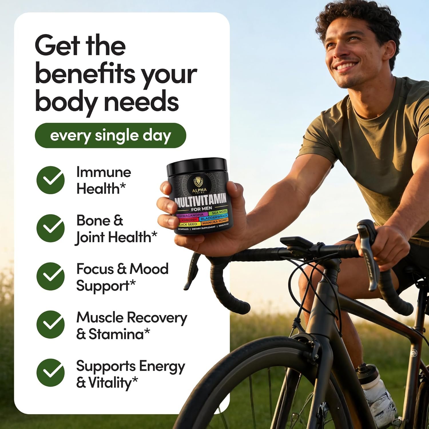 Alpha Tribe Men’s Multivitamin: Premium Holistic Formula with Sea Moss, Ashwagandha & Black Seed Oil