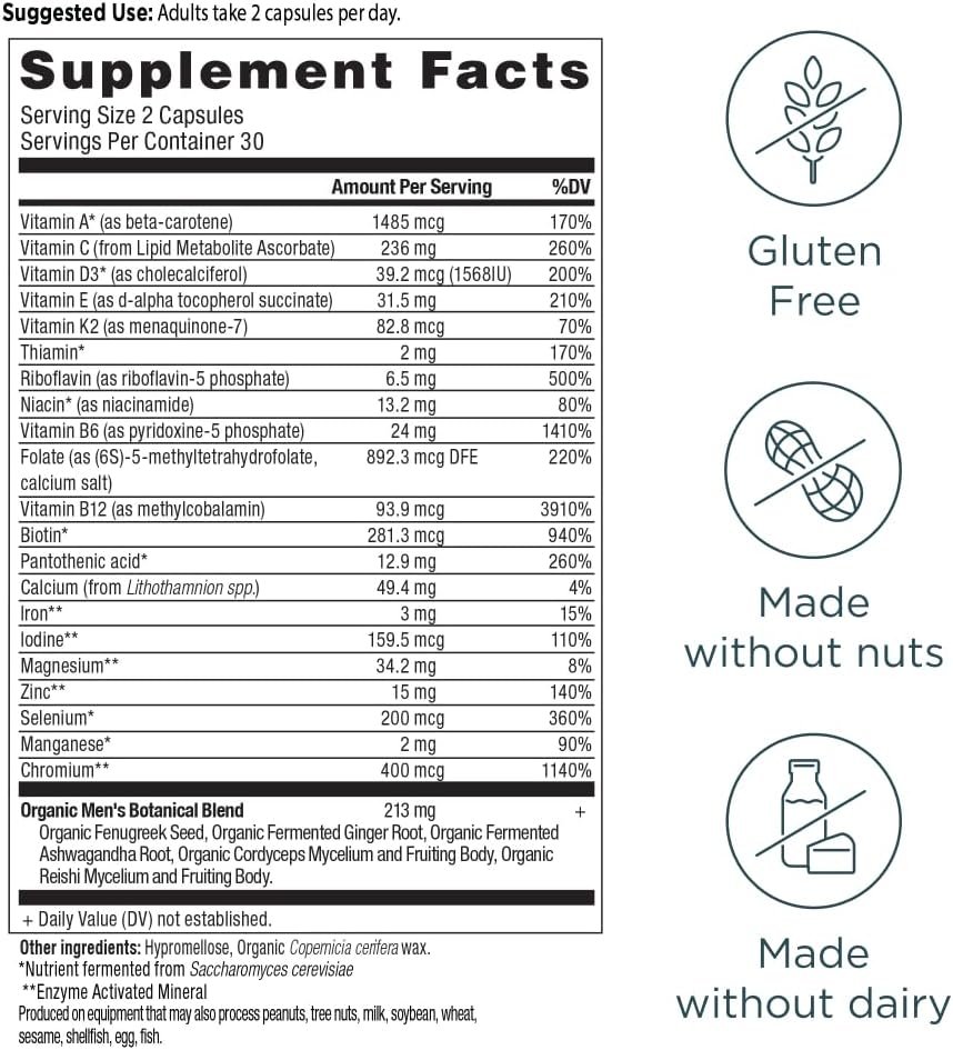 Fermented Whole-Food & Herb Blend: Contains a 213mg organic men’s plant blend that is fermented to break down nutrients for easier absorption. This includes: