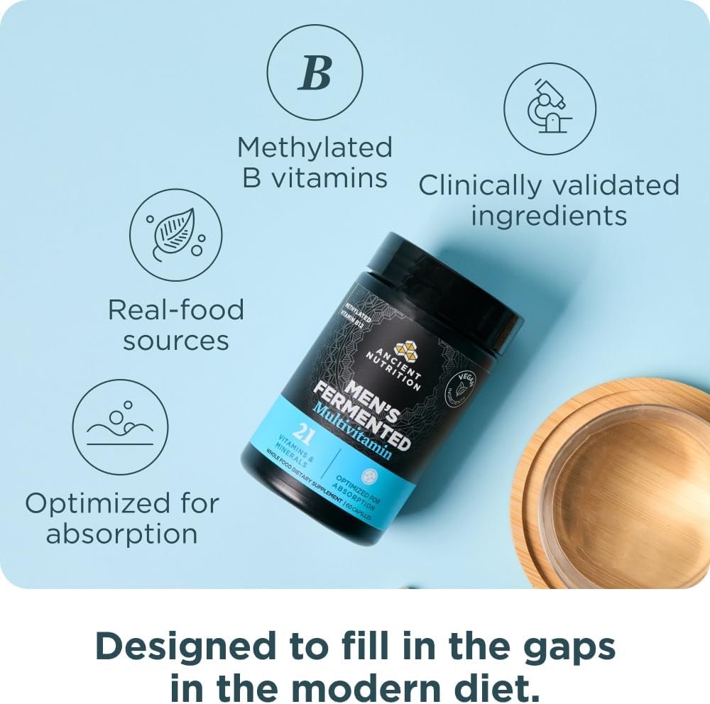 Ancient Nutrition Fermented Multi for Men: Bioactive Support with Methylated Nutrients