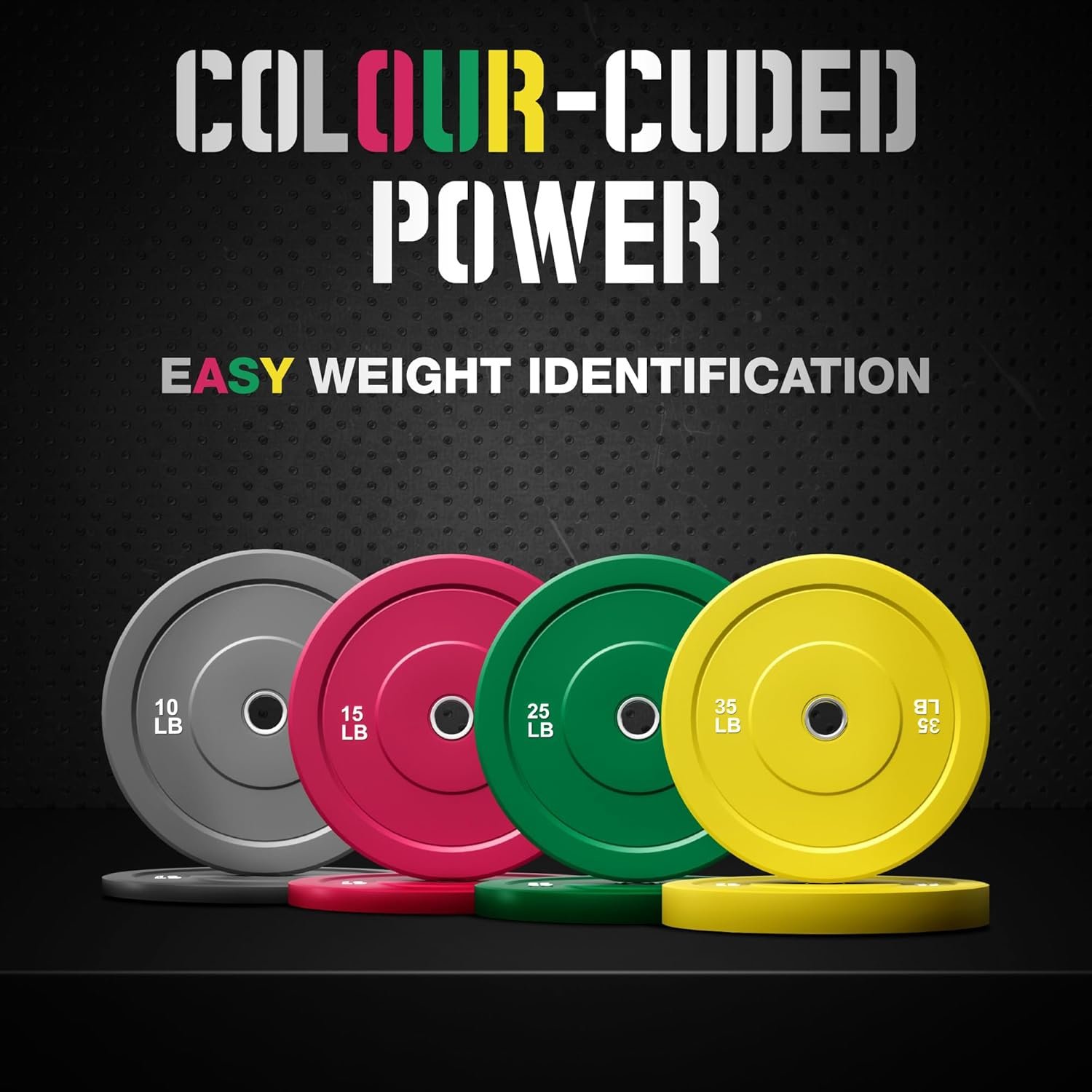 Each plate features vibrant color coding, allowing you to quickly identify weight increments during fast-paced training sessions. The colors are fade-resistant, easy to clean, and ideal for both personal and commercial gyms looking for a professional, organized aesthetic.