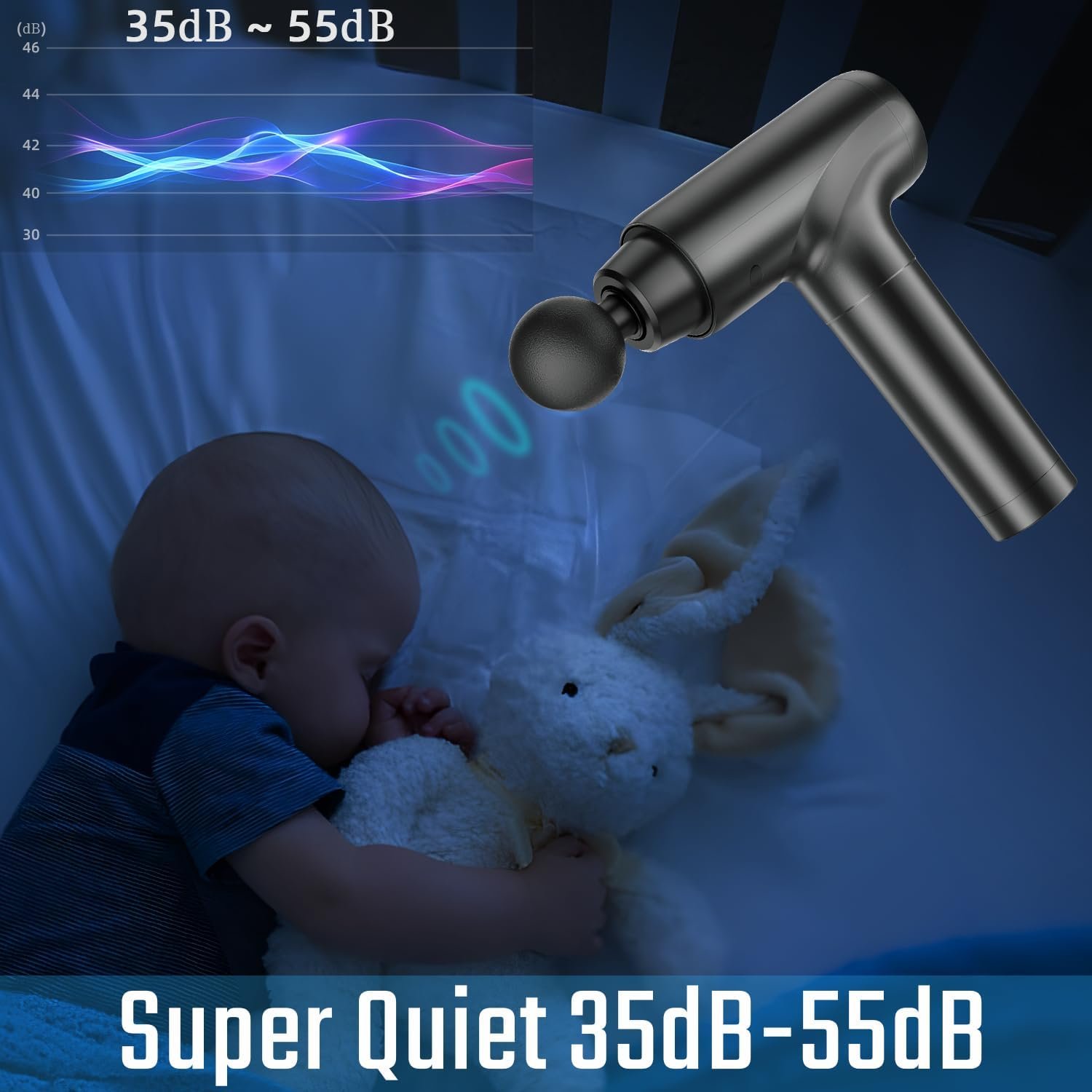 Powered by a silent brushless motor, this massage gun operates quietly (typically under ~40 dB), so you can enjoy relief without loud noise — great for home, office, or shared spaces.