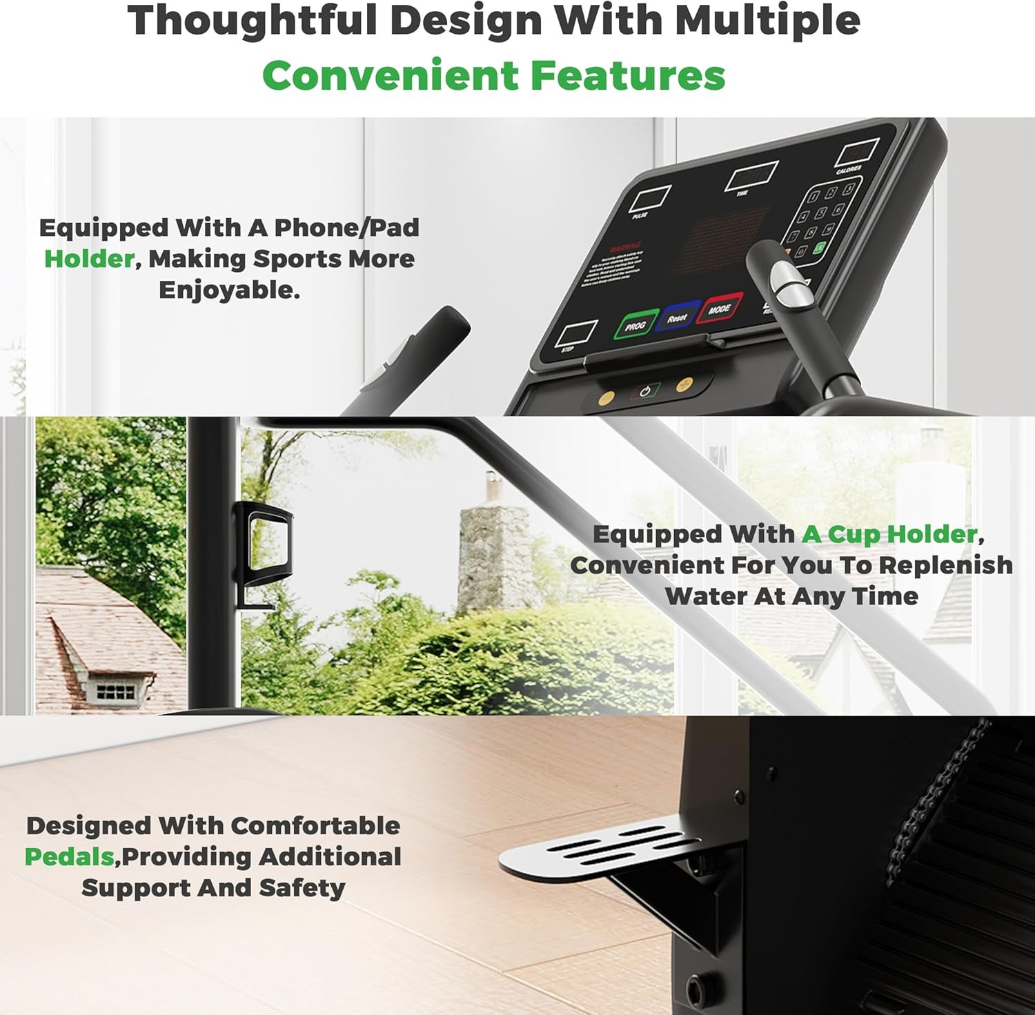 Special Features: Real-time Heart Rate Monitoring, Water Bottle Holder, Quiet Operation Technology