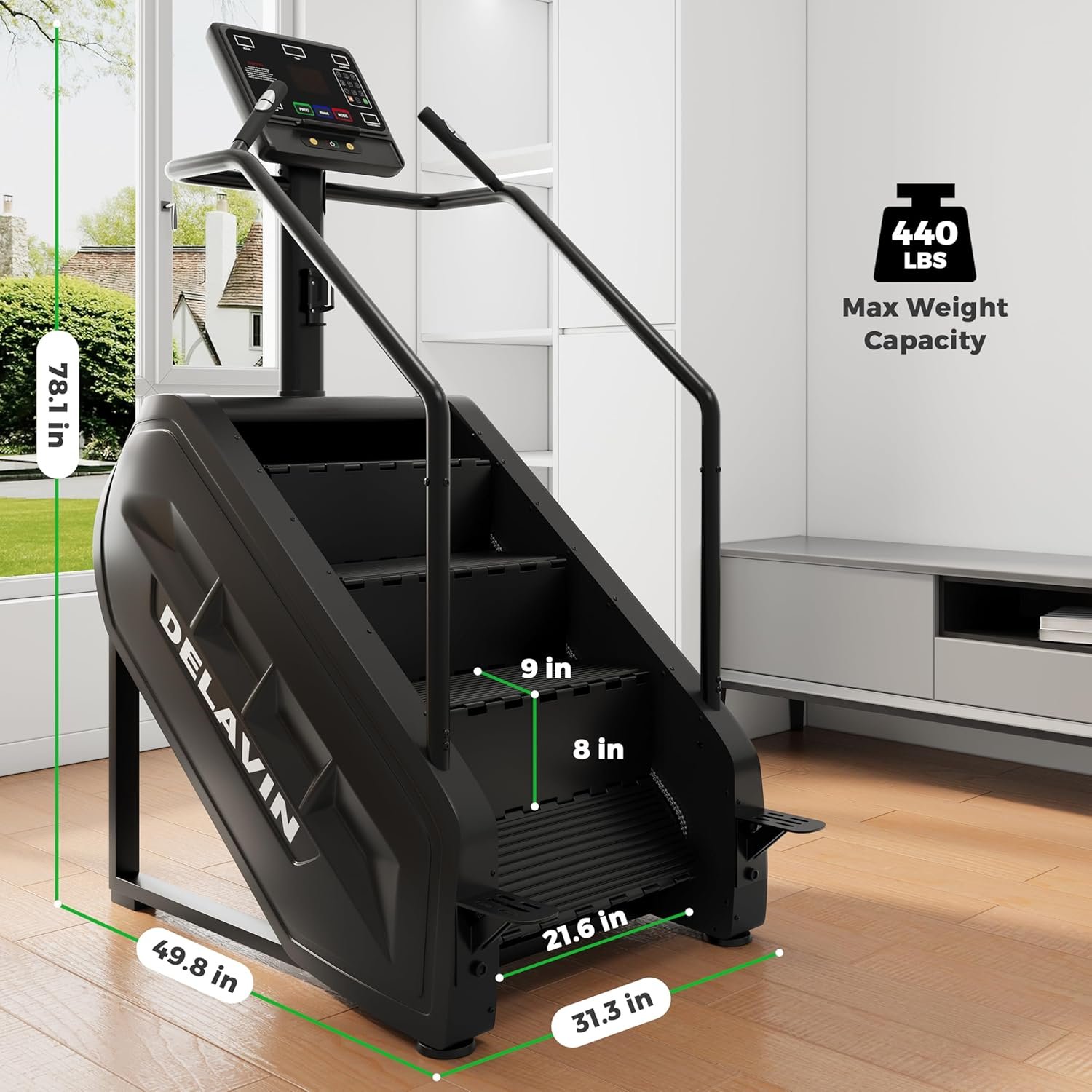 Achieve Your Fitness Goals with Confidence. The DELAVIN Stair Stepper combines durable construction, intuitive controls, and essential safety features into a reliable machine perfect for achieving serious cardio and strength results at home.