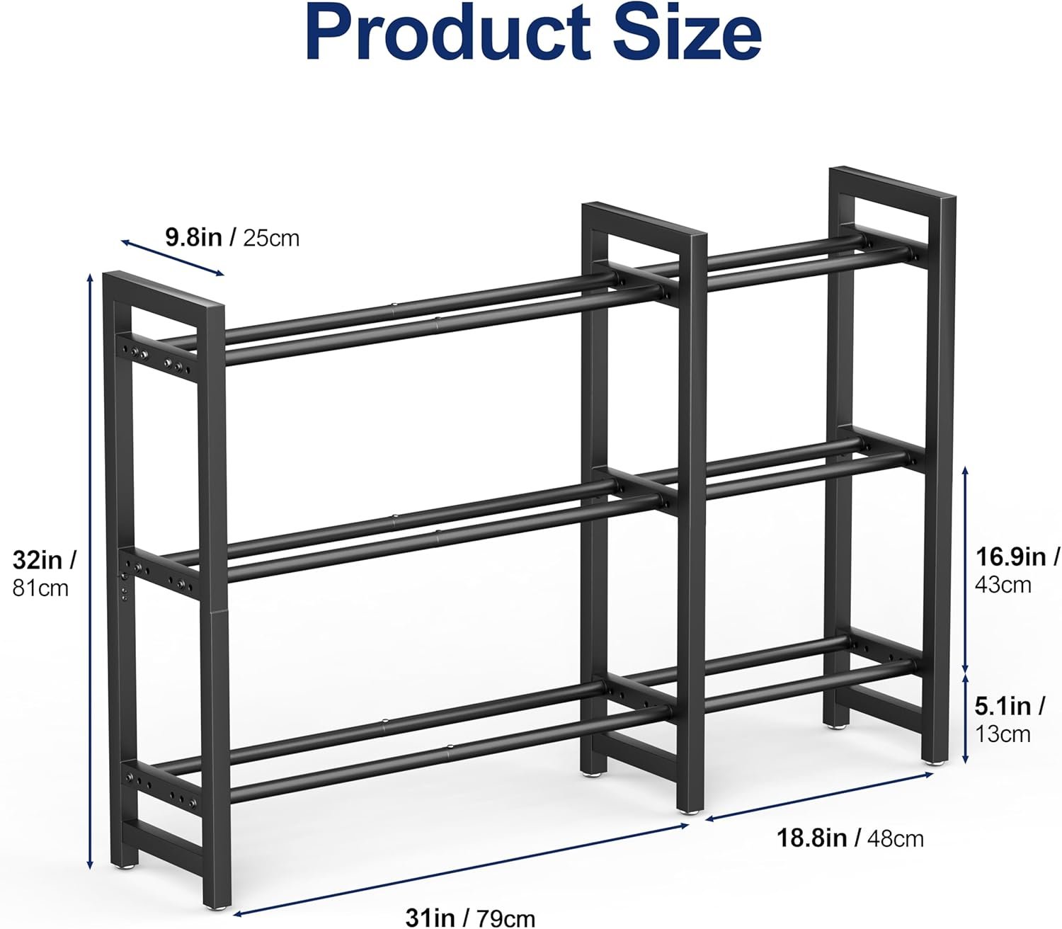 3-Tier x 50 Inch Length:3-tier open layout make every item visible and reachable—no more messy piles.