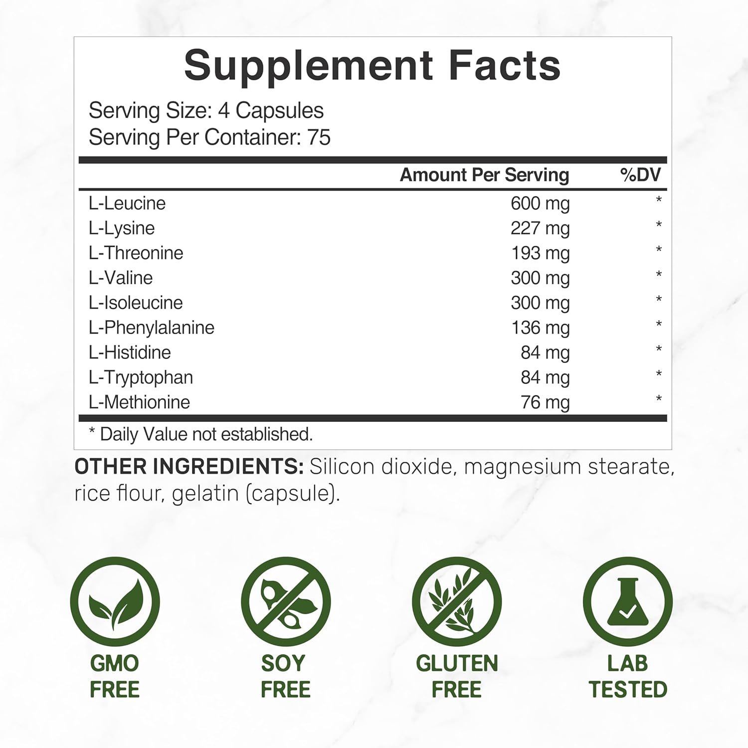 At 300 capsules per bottle with 2000 mg of EAAs per serving, you get a long‑lasting supply that fits into daily nutrition routines without clutter or fuss.