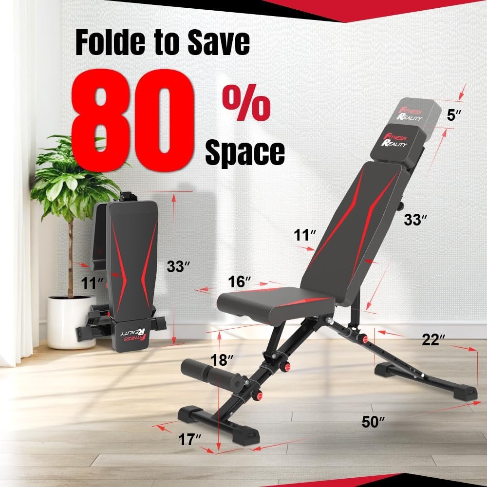 Elevate your home gym setup with the Fitness Reality 1000 Super Max Adjustable Weight Bench, designed for versatility, strength training, and compact storage. This folding bench supports incline, flat, and decline positions so you can target your chest, shoulders, back, and core with ease. Built for both strength and convenience, it balances durability with space-saving functionality for serious training at home.