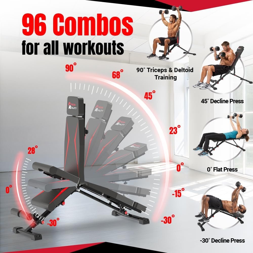Fitness Reality Adjustable Weight Bench Press for Incline Decline Workouts