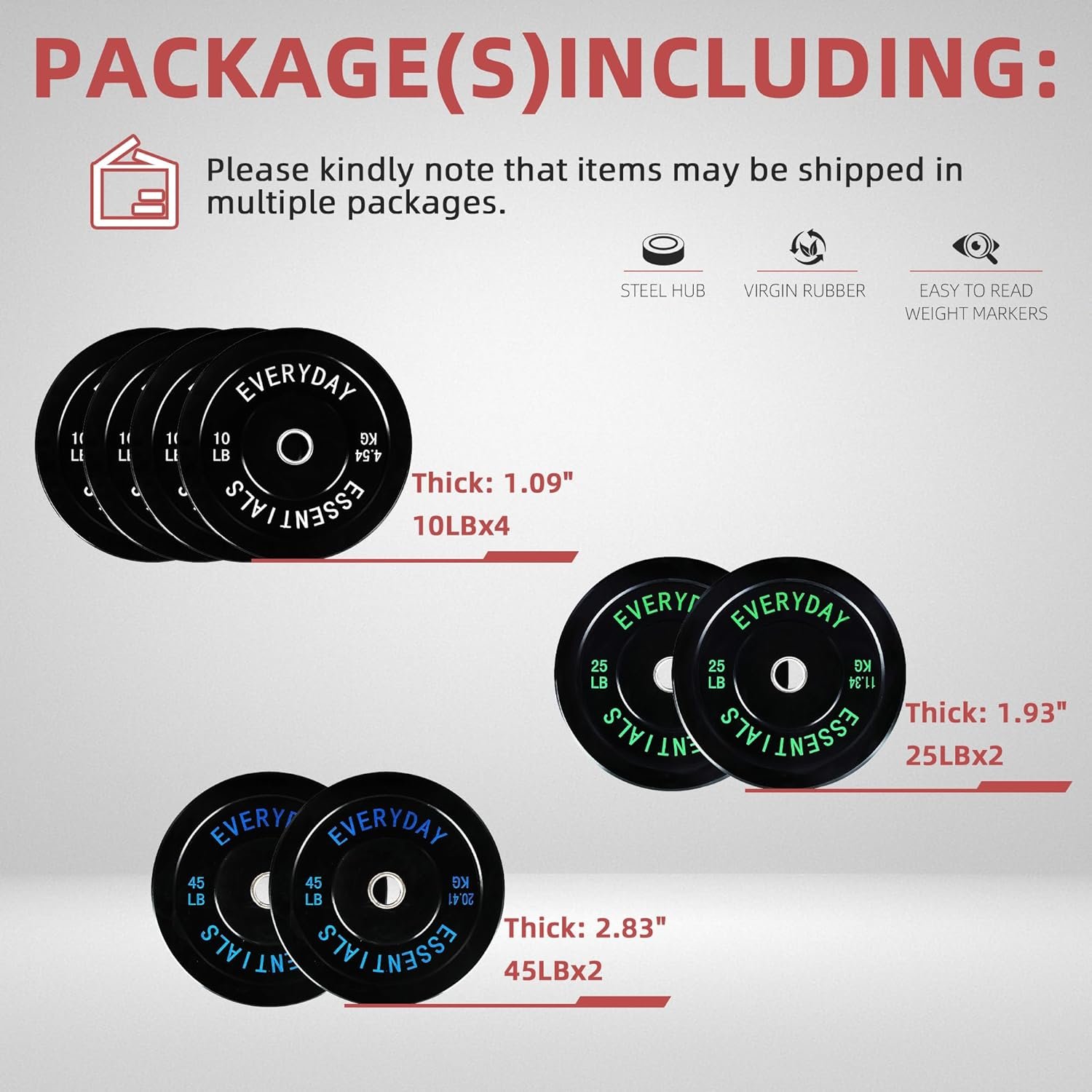 • Expandable Setup: You can add more plates later (e.g., 35 lb or 55 lb bumpers) as your strength and training demands grow.