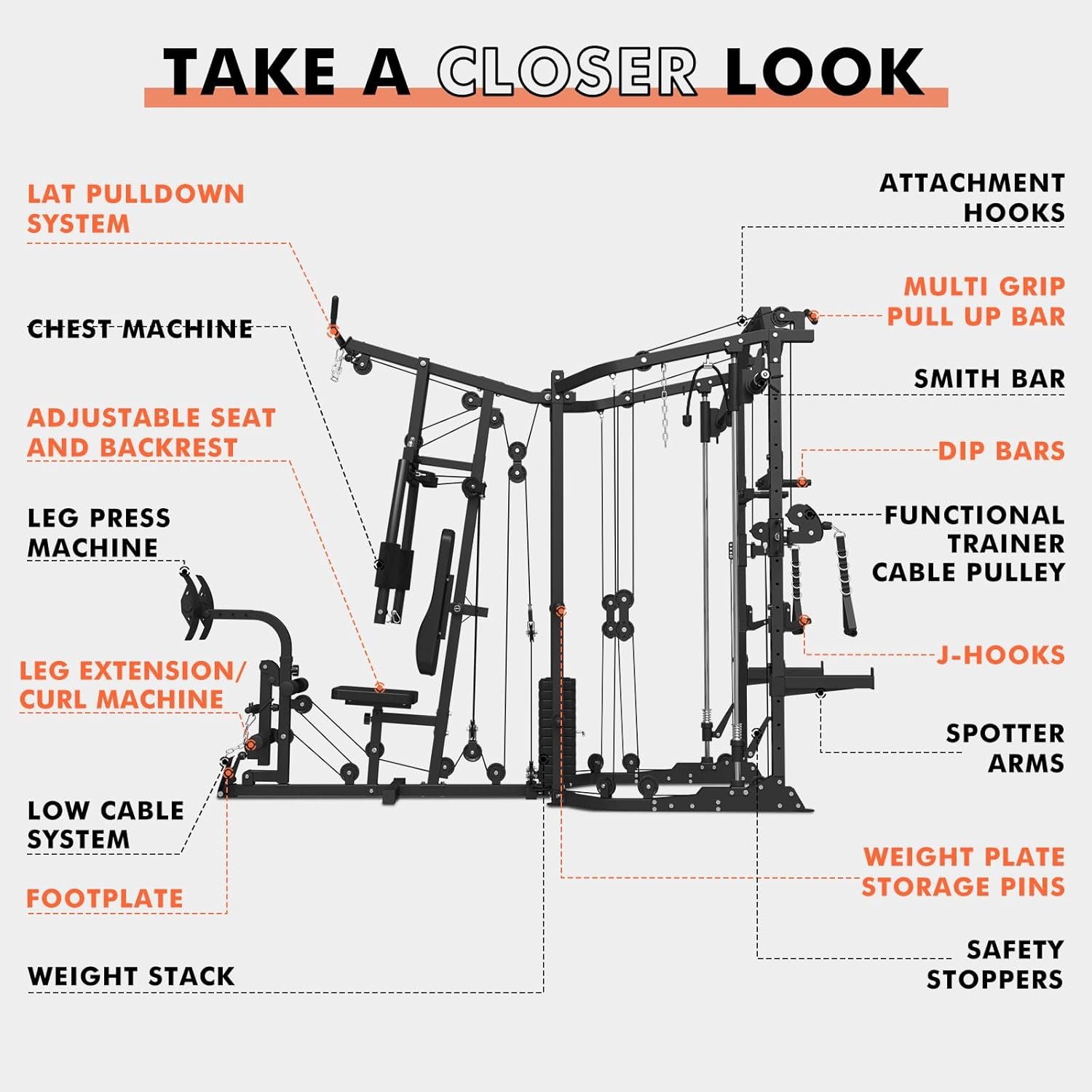 • Cost-Effective: Buying one multi-function gym system can be cheaper than assembling separate racks, cables, and smith systems.