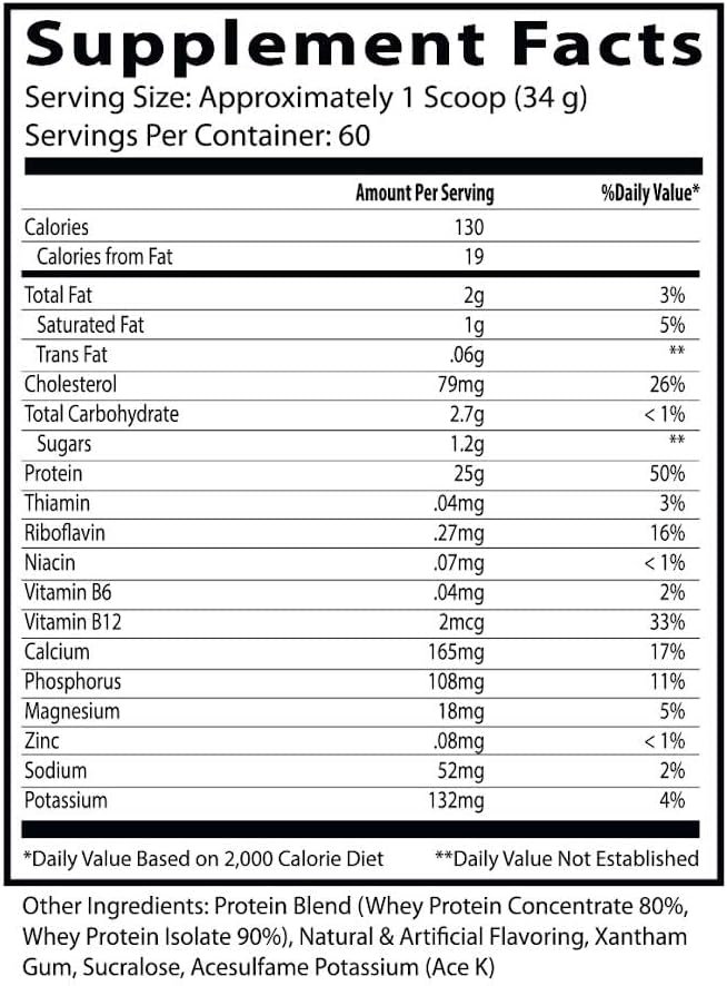 Each serving delivers around 25 g of protein sourced from whey, a fast‑digesting protein known for supporting: