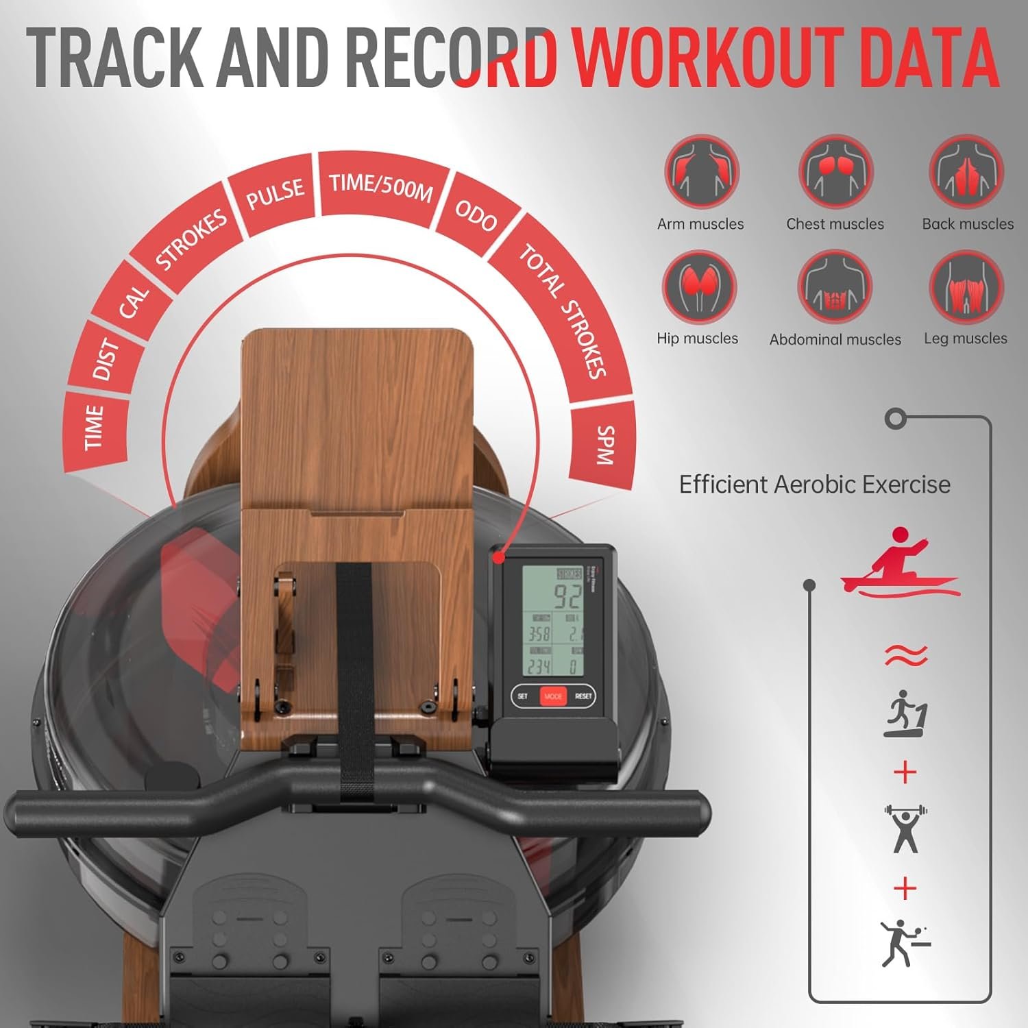 • Multi-Function Monitor: LCD display reports key workout metrics like time, distance, strokes, calories, and speed, so you can track session progress easily.