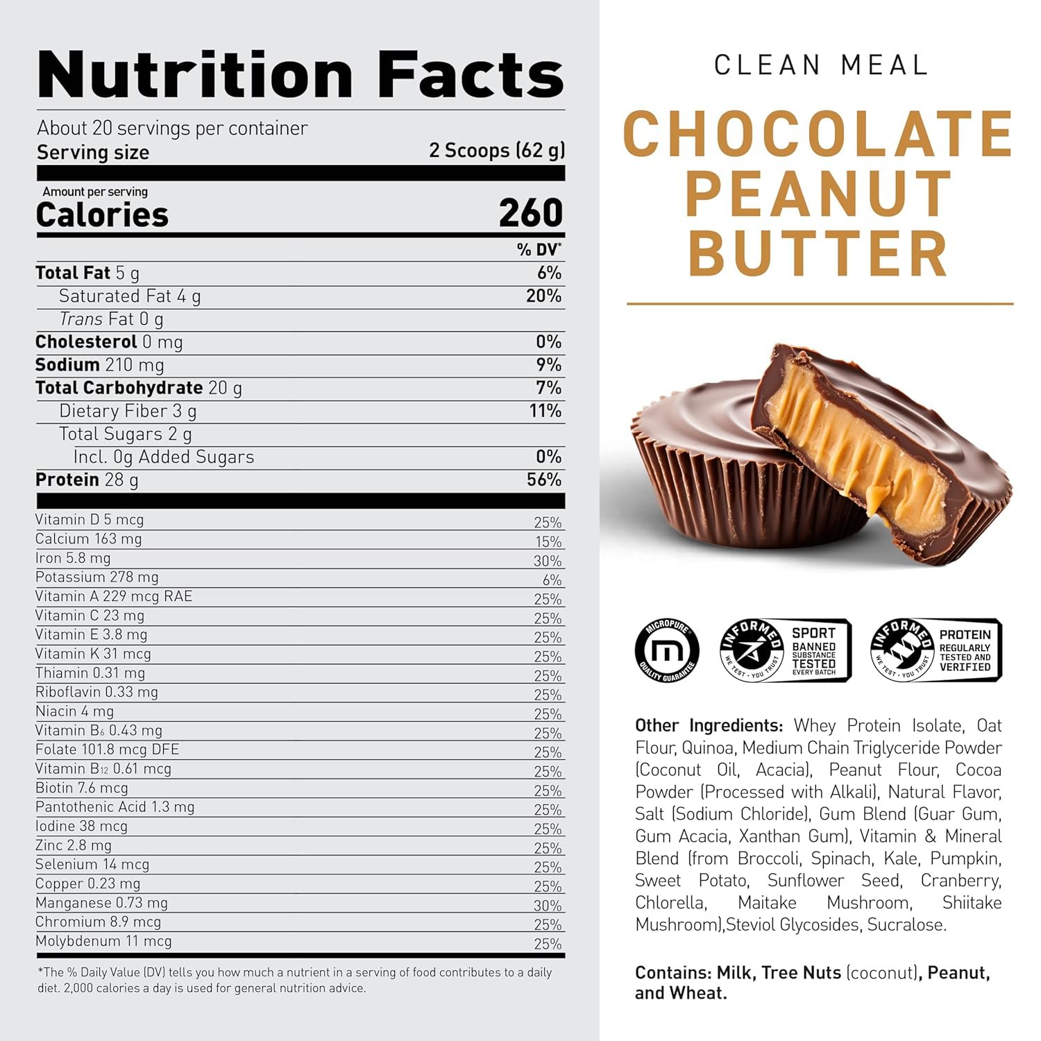 This balanced macro split makes Clean Meal useful whether you’re cutting, bulking, or maintaining — giving you real food nutrition without processed maltodextrin or sugary fillers.