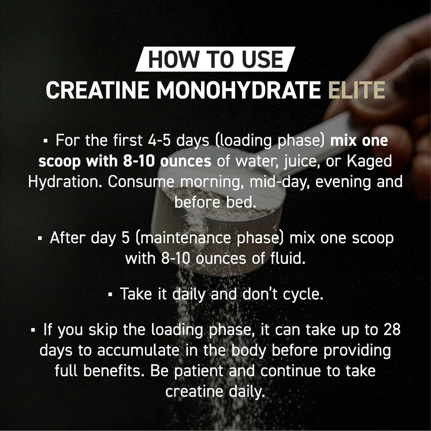 • Results aren’t instant — creatine needs to build up in your system over time (usually 2–4 weeks of consistent daily use).
