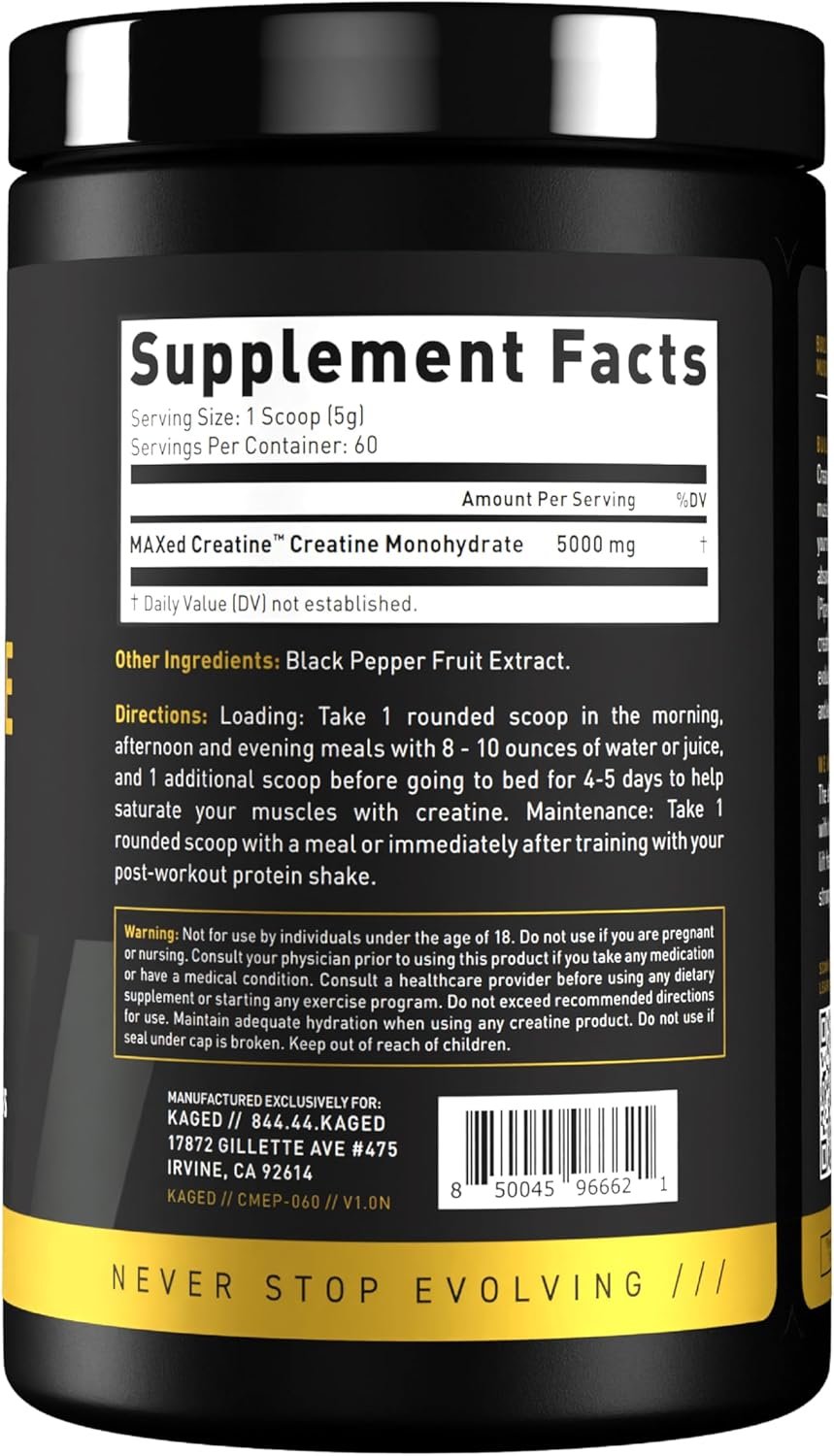 Kaged Creatine Monohydrate is a pure, unflavored micronized creatine monohydrate supplement — the classic, most widely studied form of creatine used by athletes, strength trainers, and active people looking to improve strength, power, endurance, and muscle growth. Creatine monohydrate is often considered one of the most effective and cost‑efficient performance enhancers in sports nutrition.