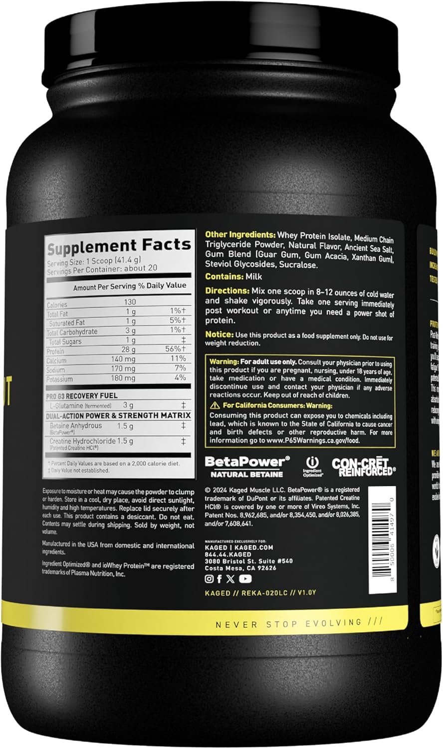 Kaged Re‑Kaged Post Workout Protein is not just a standard protein powder — it’s a recovery-focused post-workout formula that combines high-quality whey protein isolate with additional recovery and performance-support ingredients. Each serving is made to be taken immediately after exercise to replenish nutrients and support muscle repair, strength, and growth.
