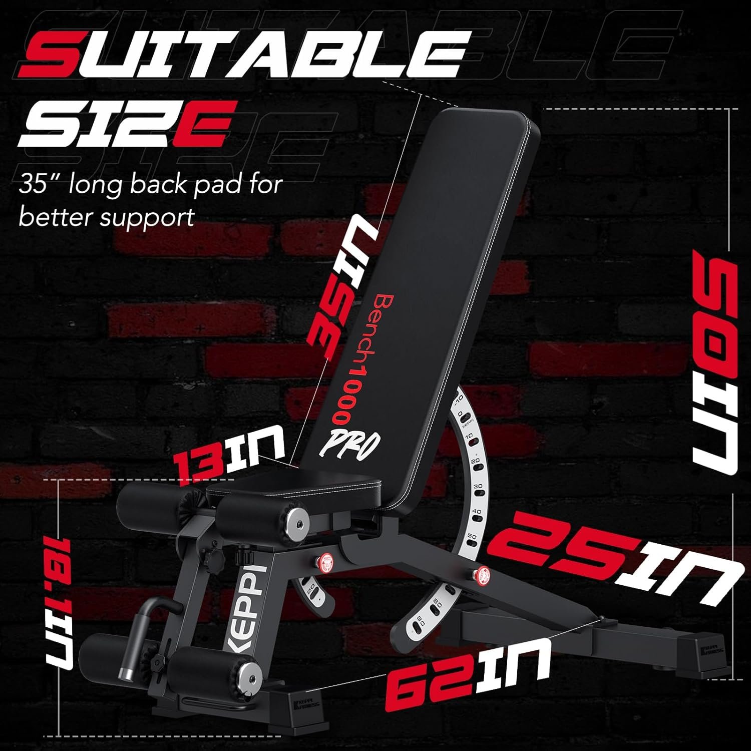 Keppi 1200LB Weight Bench Heavy Duty Bench 1000 PRO Adjustable Workout Bench