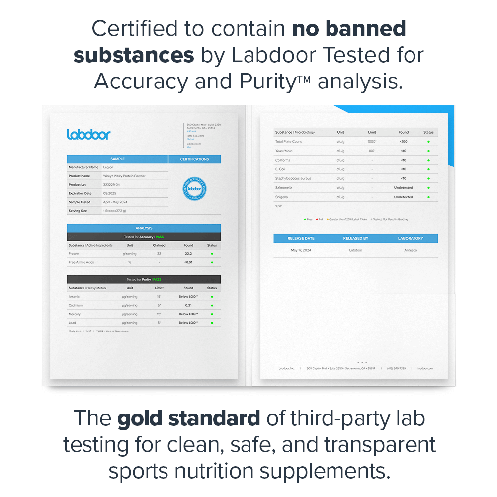 • Every batch is third-party lab tested for purity, potency, and banned substances (ISO 17025 accredited).