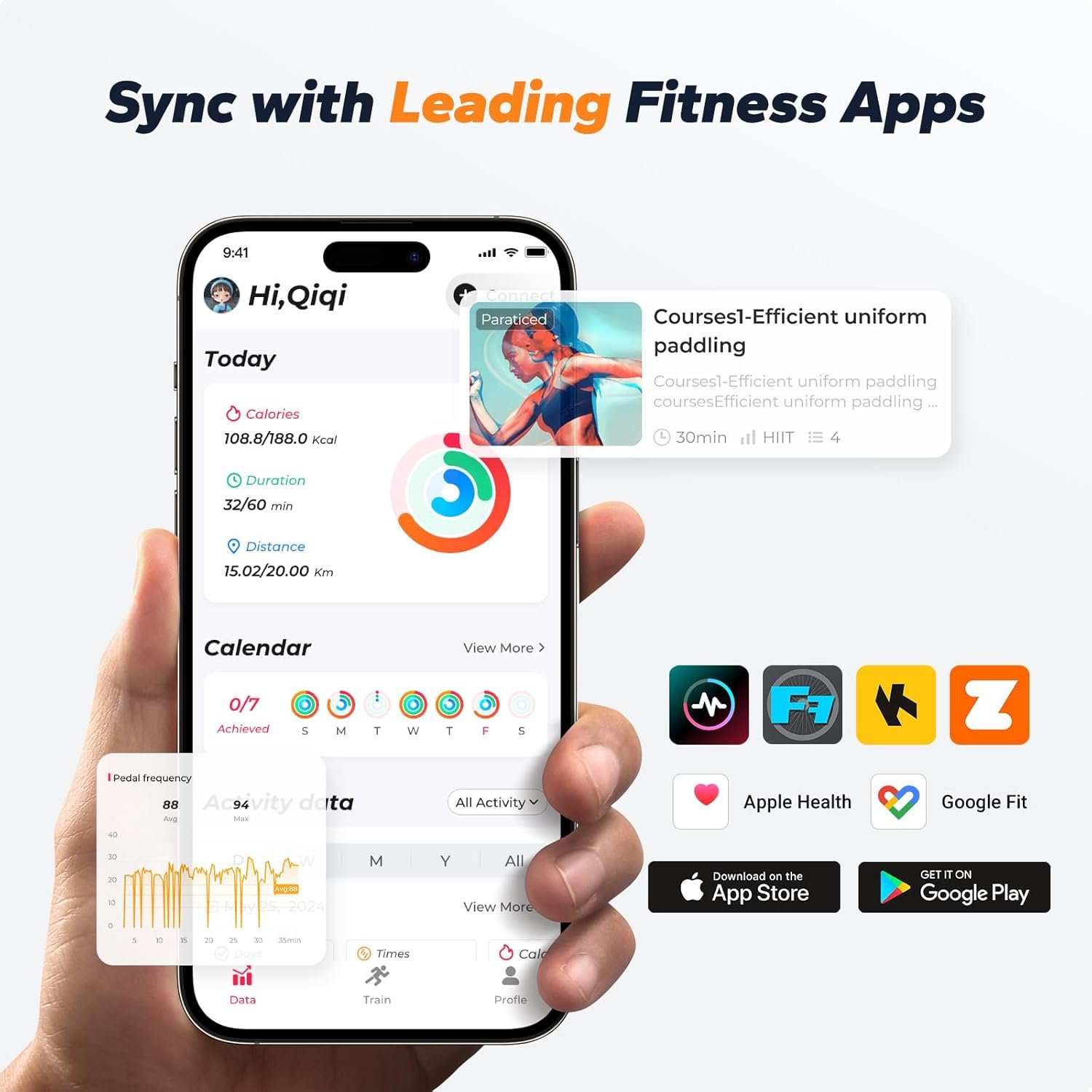 Also works with Kinomap, Zwift, and FantomFite, allowing you to track your workouts and train in virtual scenery.
