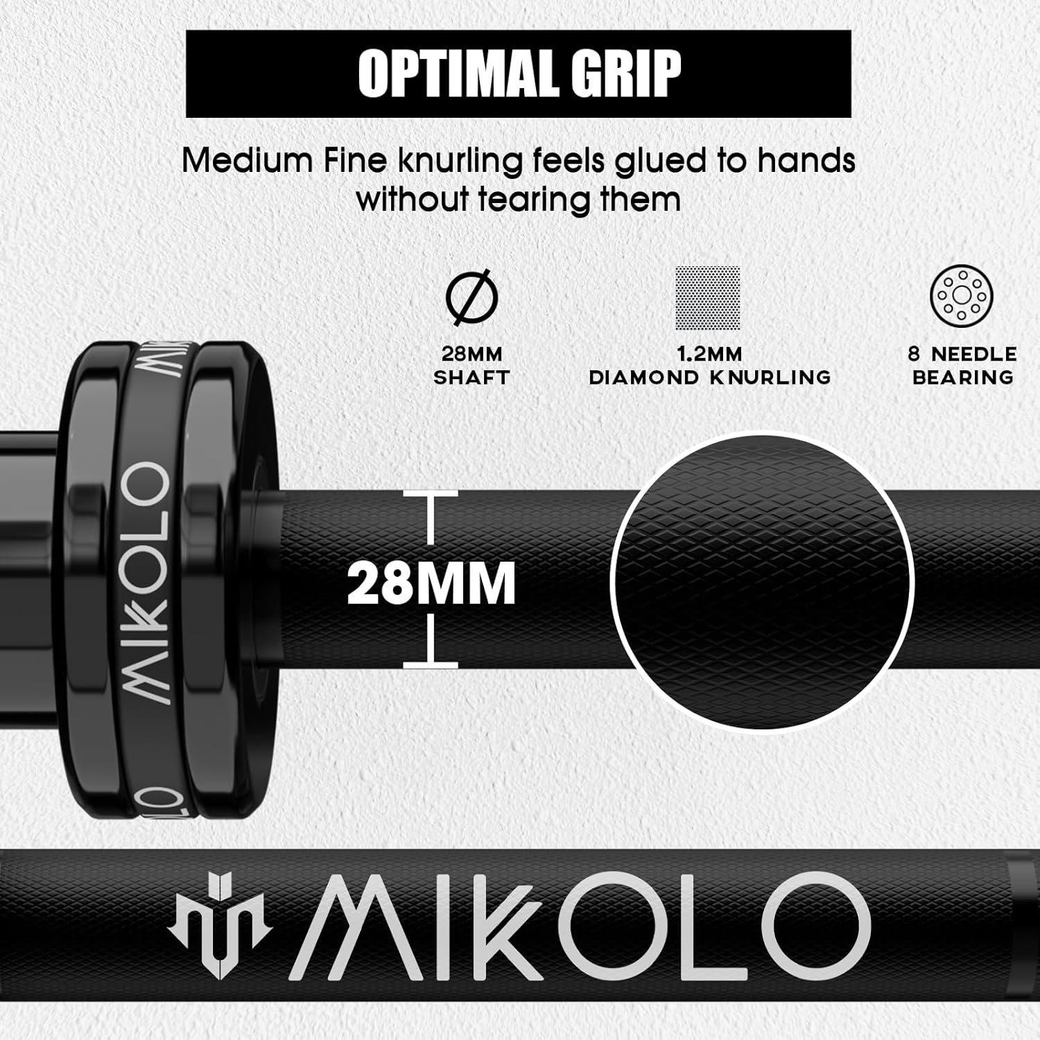 • Dual knurl markings — makes hand placement universal across lifts.