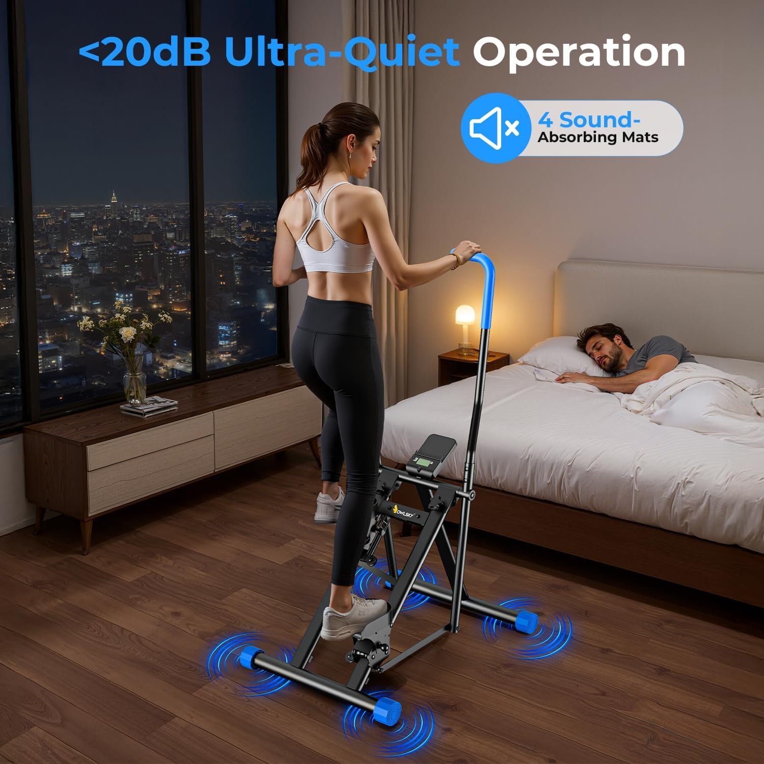 A space-efficient vertical climber that fits easily into apartments, bedrooms, or small exercise spaces. Some models fold for convenient storage.