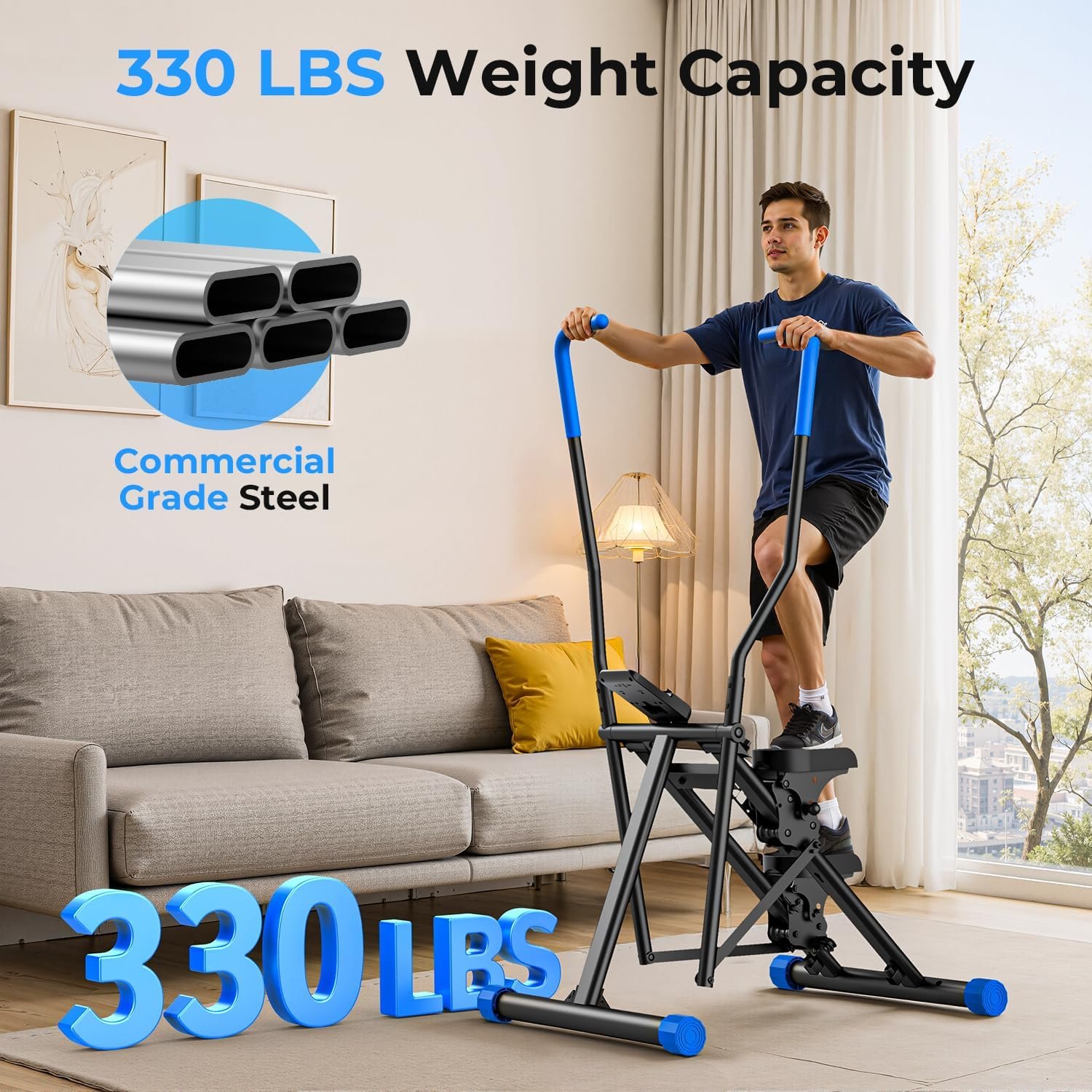 Designed with a heavy-duty steel frame, smooth stepping action, and ergonomic grips, the MR. CAPTAIN Vertical Climber provides a low-impact yet highly effective cardio workout that mimics natural stair climbing and mountain-style vertical training.