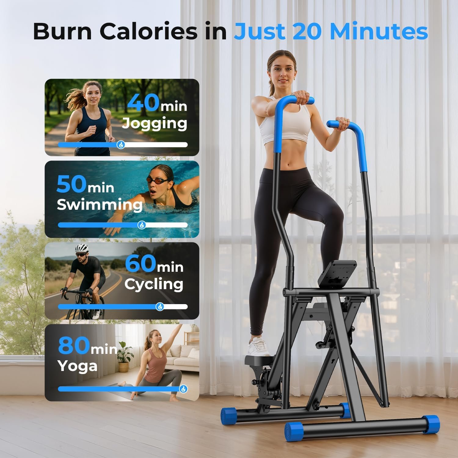 Engage legs, glutes, calves, core, and upper body simultaneously. Vertical climbing activates more muscles than treadmills or ellipticals, making it one of the most efficient calorie-burning workouts.