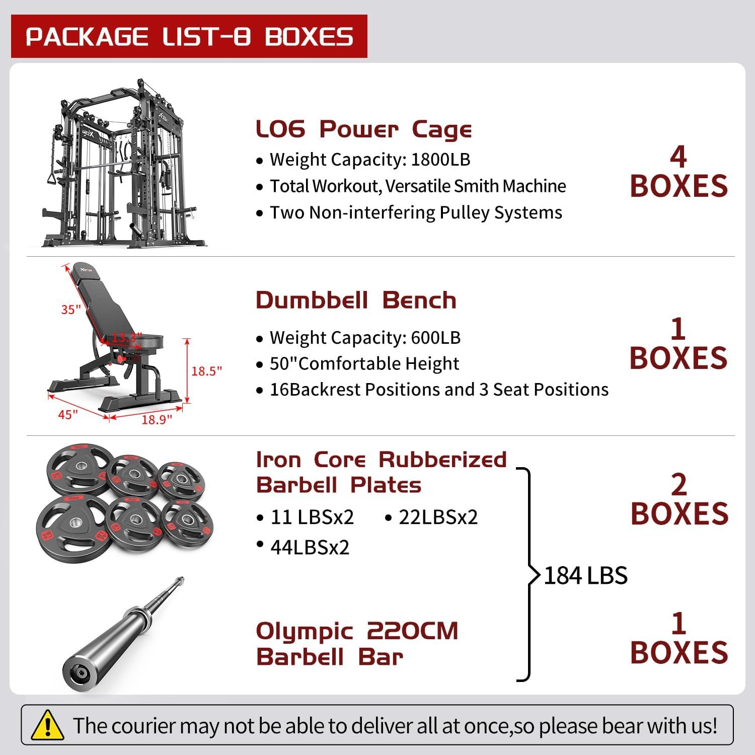Although Amazon doesn’t list full manufacturer‑provided package dimensions, equipment sets like this typically ship in 3–4 large boxes due to size and weight, with key components packed separately for safety during transport: