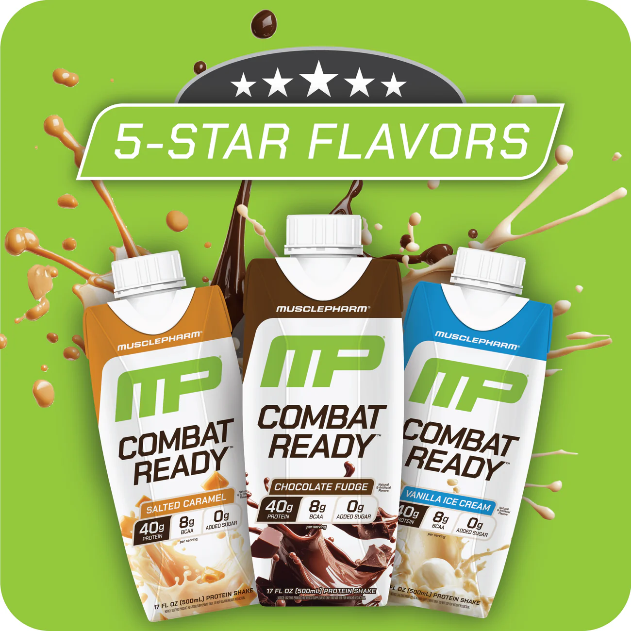 Power through your workouts and busy days with MusclePharm Combat Ready High Protein Shakes, the ultimate ready-to-drink (RTD) protein solution for serious athletes and everyday performers. Each 17 fl oz bottle delivers an impressive 40g of high-quality protein, including a precise blend of casein protein and essential amino acids like 8.7g of L-Glutamine and 8g of BCAAs to support lean muscle growth, immune health, and post-workout recovery.