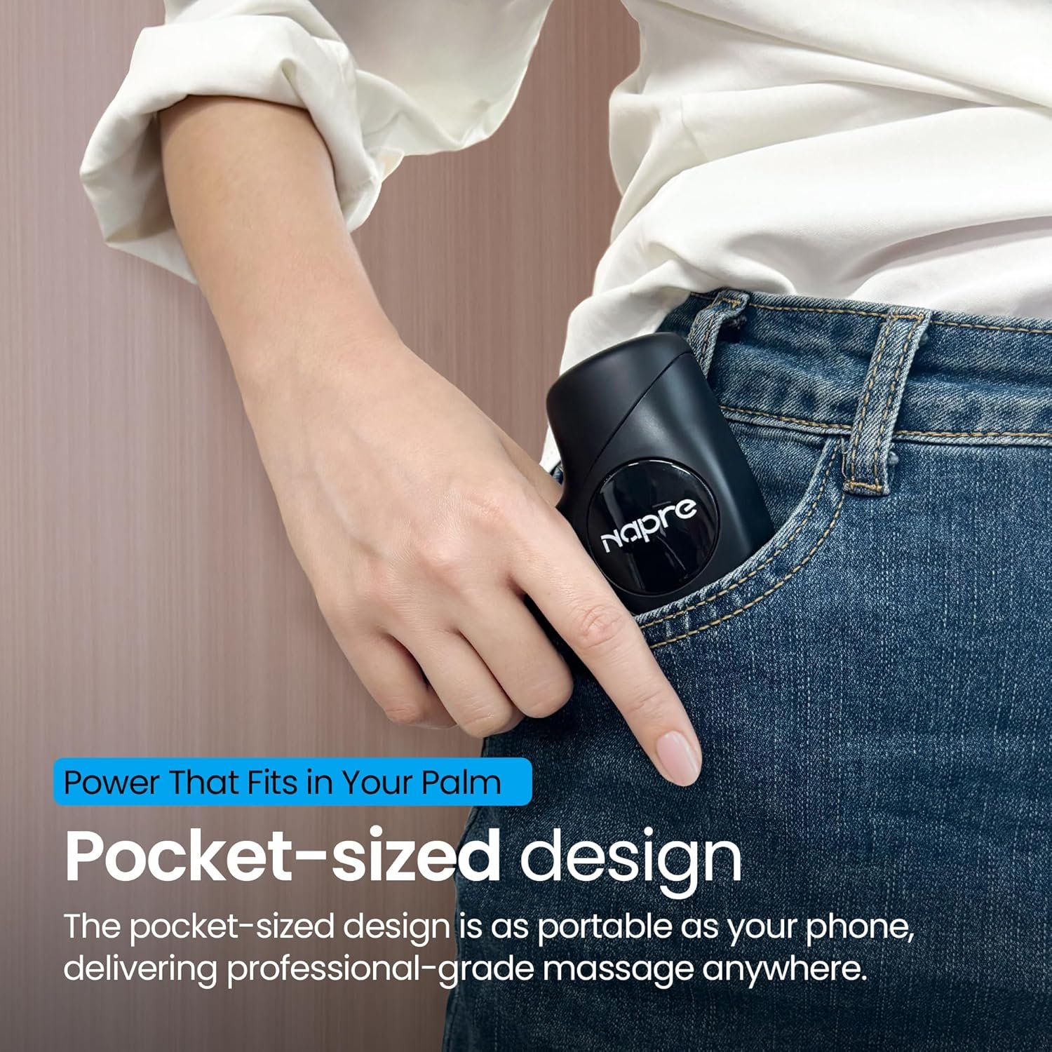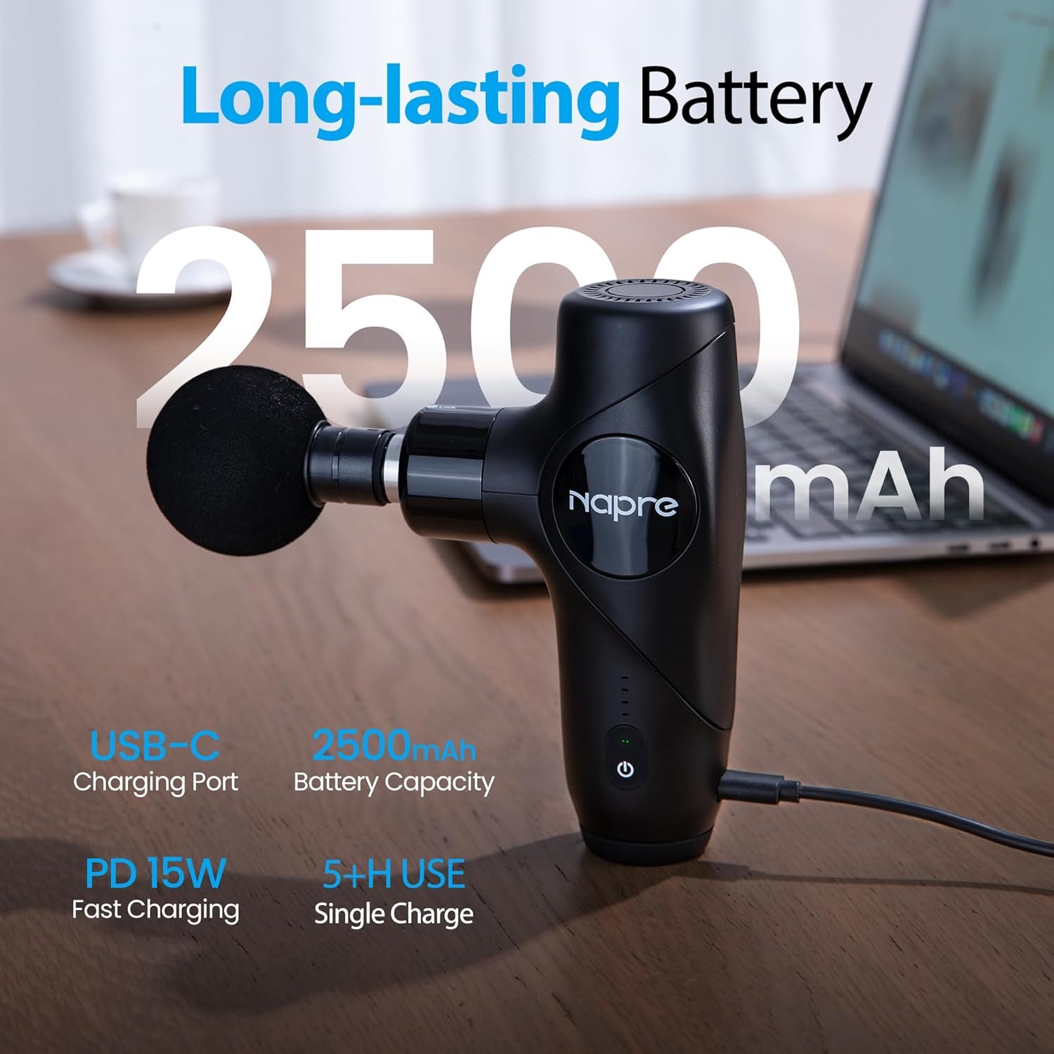The Napre percussion massage gun — handheld, cordless, and rechargeable