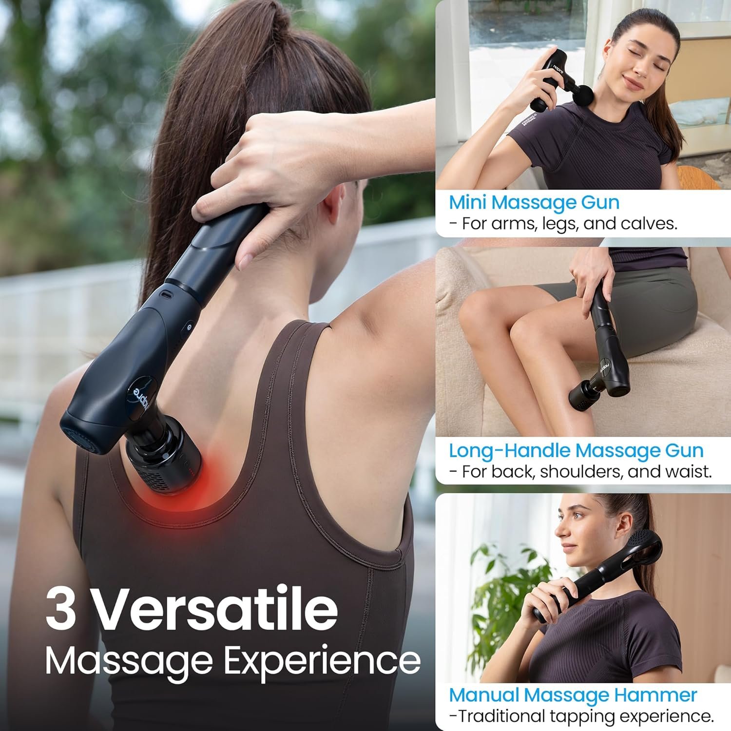 Thanks to the adjustable handle and foldable design, you can self‑treat hard‑to‑reach areas comfortably without needing someone else’s help. The 32 speed levels offer fine‑tuned control from light relaxation to more intense percussive therapy.