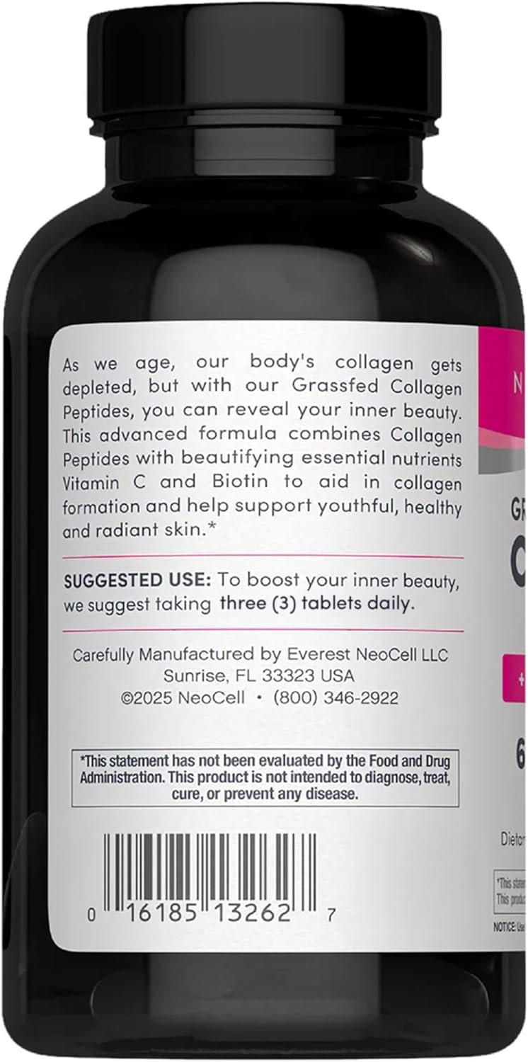 A comprehensive daily collagen tablet from NeoCell designed to support inner beauty and structural protein health from within. This formula blends hydrolyzed bovine collagen peptides with Vitamin C and biotin — key nutrients frequently associated with skin elasticity, hair strength, nail durability, and connective tissue support. Its tablet format makes this ideal for anyone who prefers pills over powders.