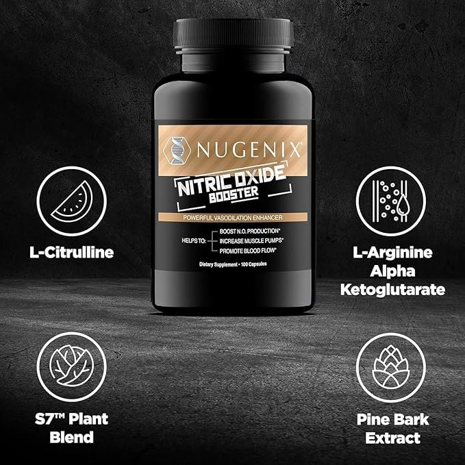 Nugenix Nitric Oxide Booster Supplement is designed to supercharge your body’s natural nitric oxide production, helping you experience powerful muscle pumps, increased endurance, and enhanced vascularity. Formulated with key ingredients like L-Arginine, L-Citrulline, and Pine Bark Extract, this premium blend supports optimal blood flow and oxygen delivery to working muscles—so you can train harder, recover faster, and perform at your peak. Perfect for men looking to elevate workout performance and energy levels without stimulants, Nugenix Nitric Oxide Booster helps you look and feel stronger from the inside out.