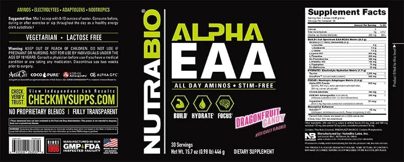 If you want more than just a basic amino acid supplement, NutraBio Alpha EAA delivers a next‑level formula that supports muscle recovery, cognitive focus, hydration, and everyday performance — all without stimulants like caffeine. Unlike ordinary EAA or BCAA powders that only scratch the surface, Alpha EAA combines a full spectrum of essential amino acids with adaptogens, nootropics, and hydration enhancers for 360° support.