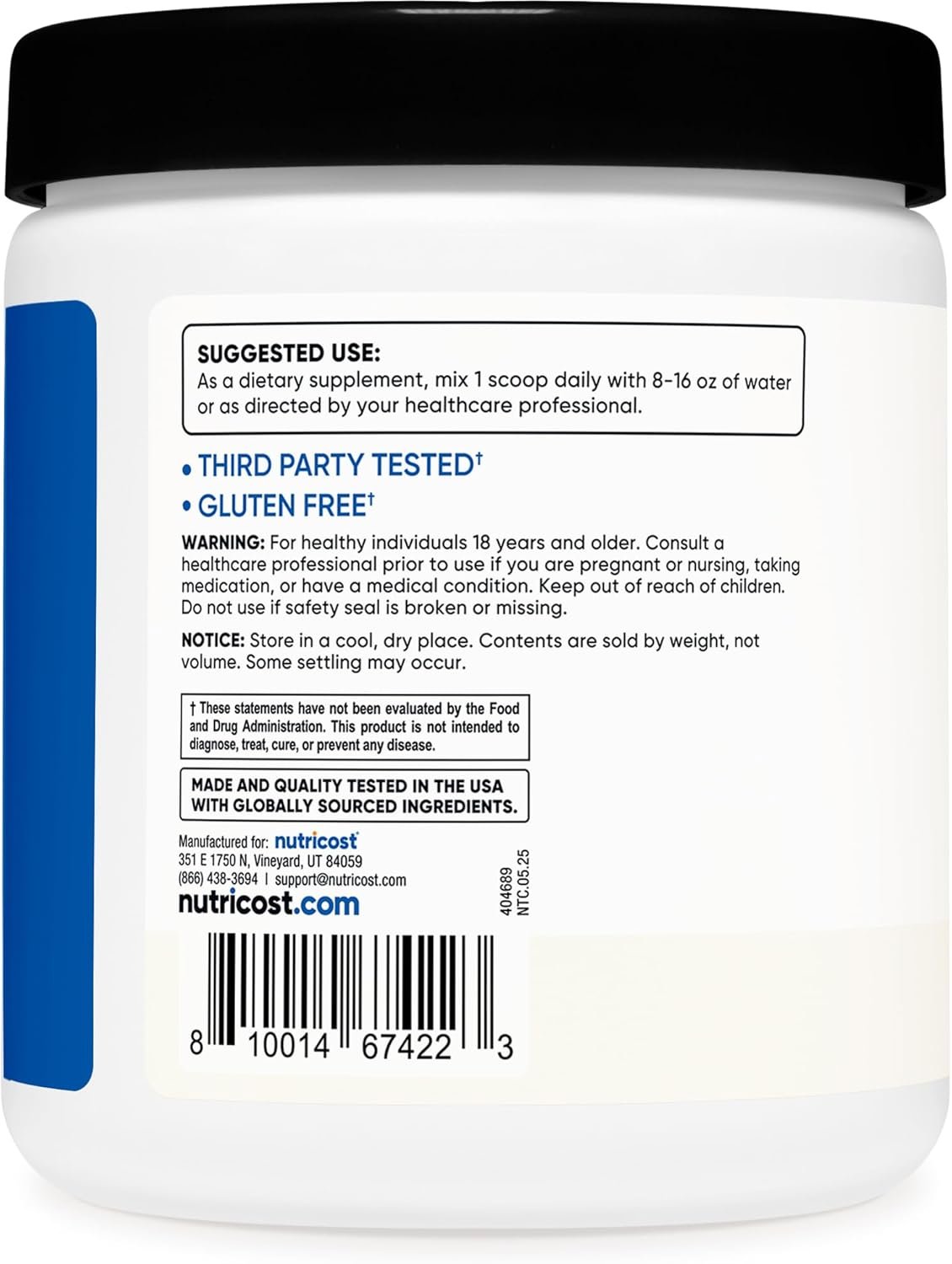 Nutricost manufactures this EAA powder in a GMP-compliant, FDA-registered facility and tests batches through independent, ISO-accredited labs to confirm quality and purity. It’s also non-GMO, gluten free, and vegetarian friendly, making it suitable for a wide range of dietary preferences.