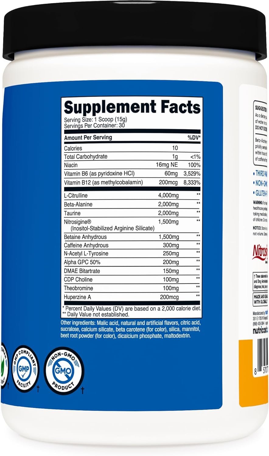 Power through every training session with Nutricost Pre-X Xtreme Pre-Workout Complex, expertly formulated to elevate energy, focus, endurance, and strength. This high-performance pre-workout blend delivers clean, sustained energy and powerful pumps — without the crash. Perfect for athletes, bodybuilders, and fitness enthusiasts who demand peak results from every workout.