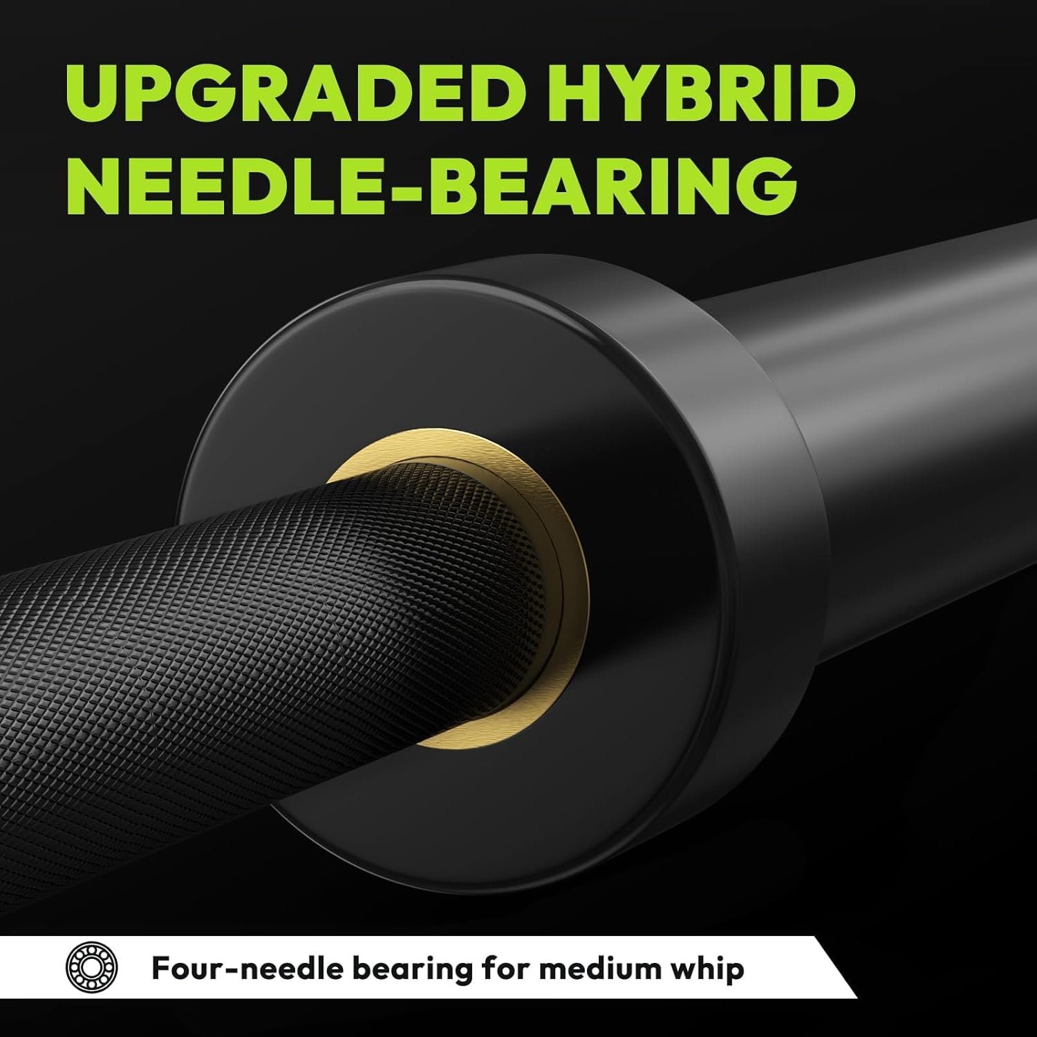 Hybrid Needle Bearings: Provides smooth, reliable sleeve rotation that reduces wrist strain and improves movement during cleans, snatches, and presses — also quieter when dropped.