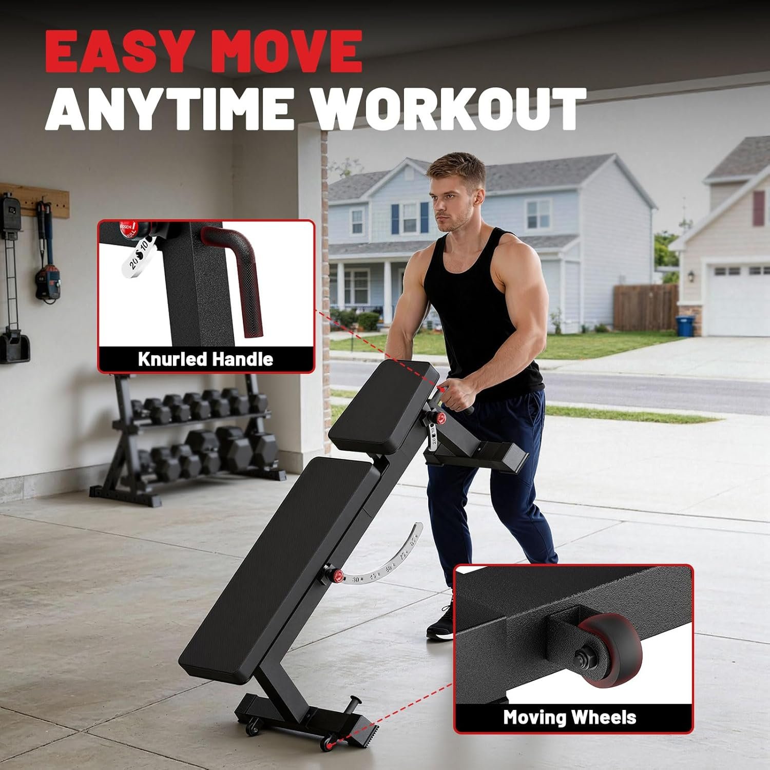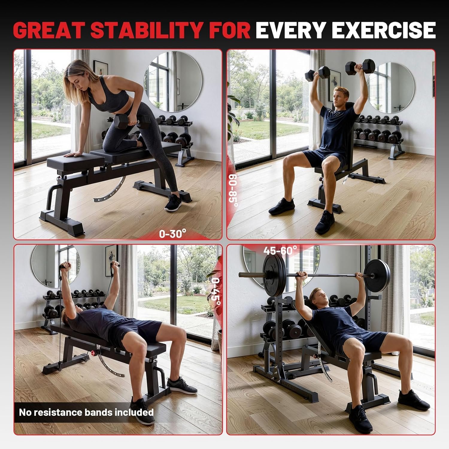 Multi-Angle Adjustability: Easily switch between flat, incline, and decline positions to target chest, shoulders, triceps, and core muscle groups without additional equipment.
