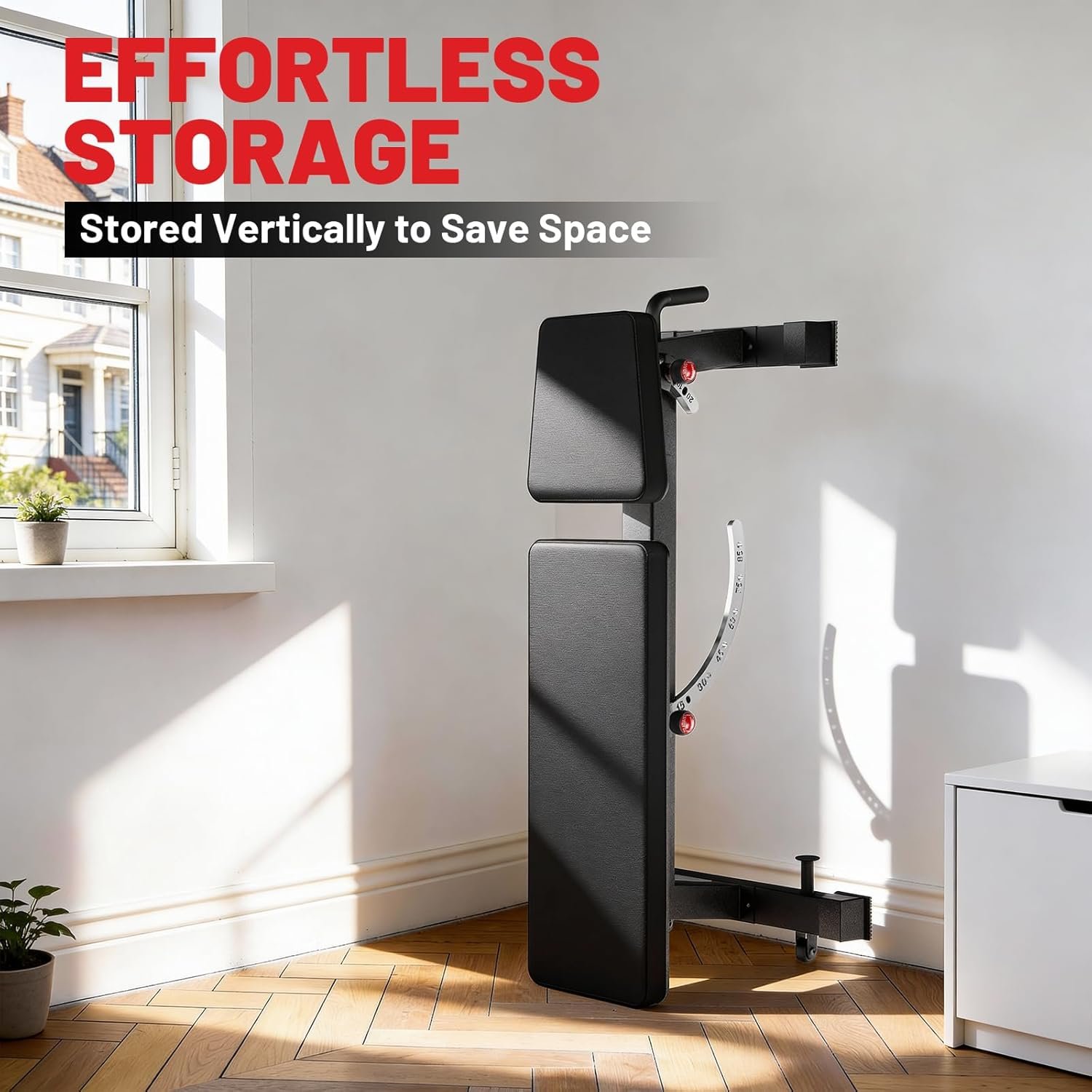Easy angle adjustments and leg support expand workout options without needing multiple benches.