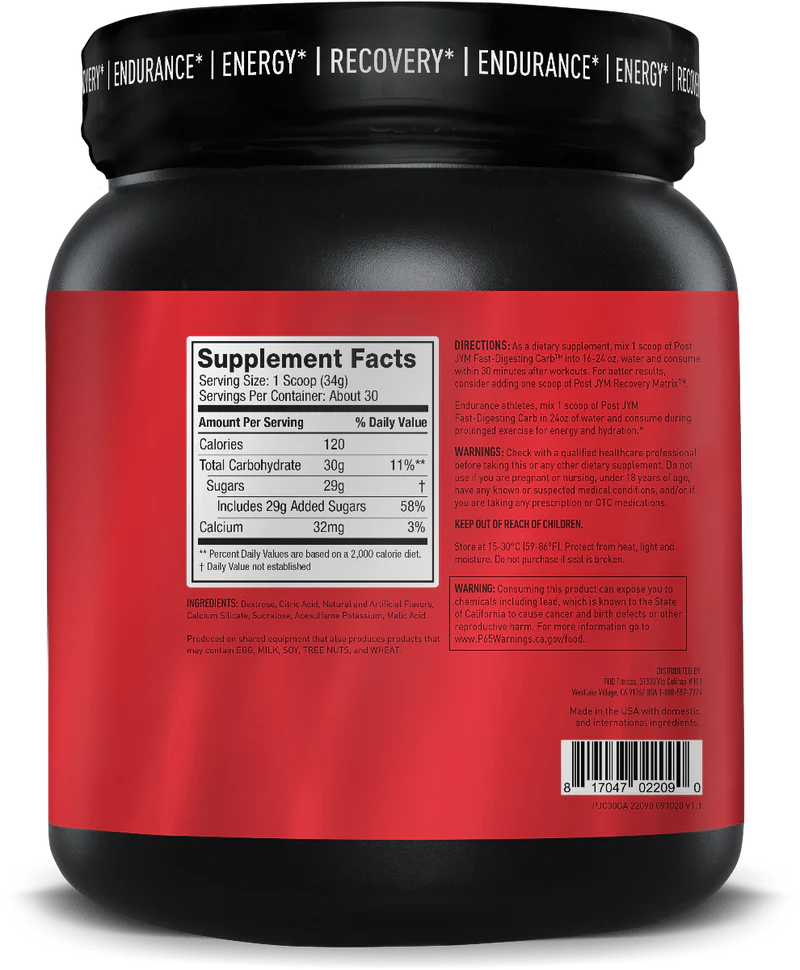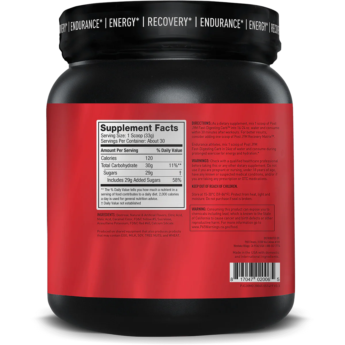 Post JYM Fast-Digesting Carb is a clean, high-performance dextrose powder crafted for serious lifters and athletes. Designed to rapidly replenish glycogen stores, it supports faster recovery, enhances nutrient uptake, and helps you bounce back stronger after intense training sessions.