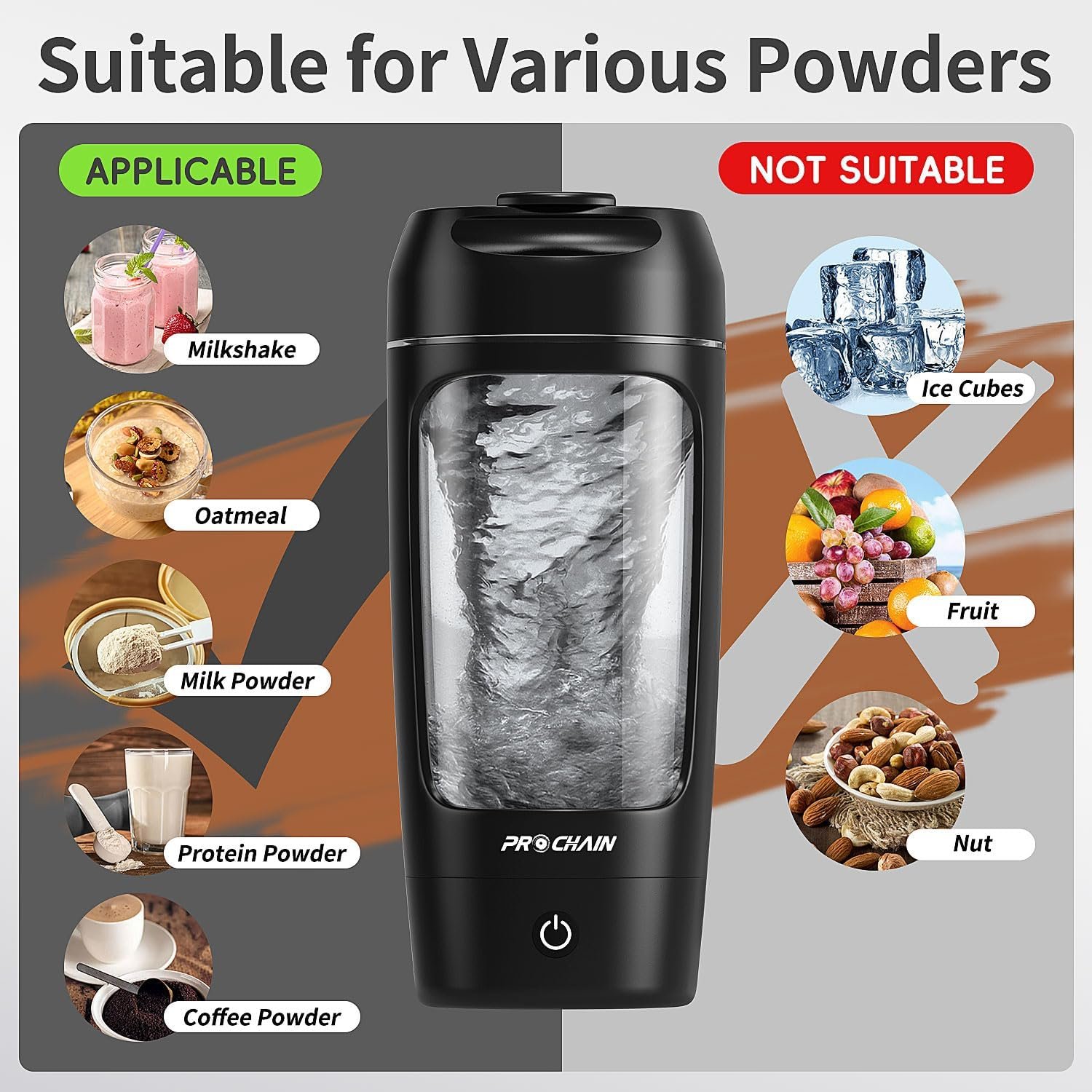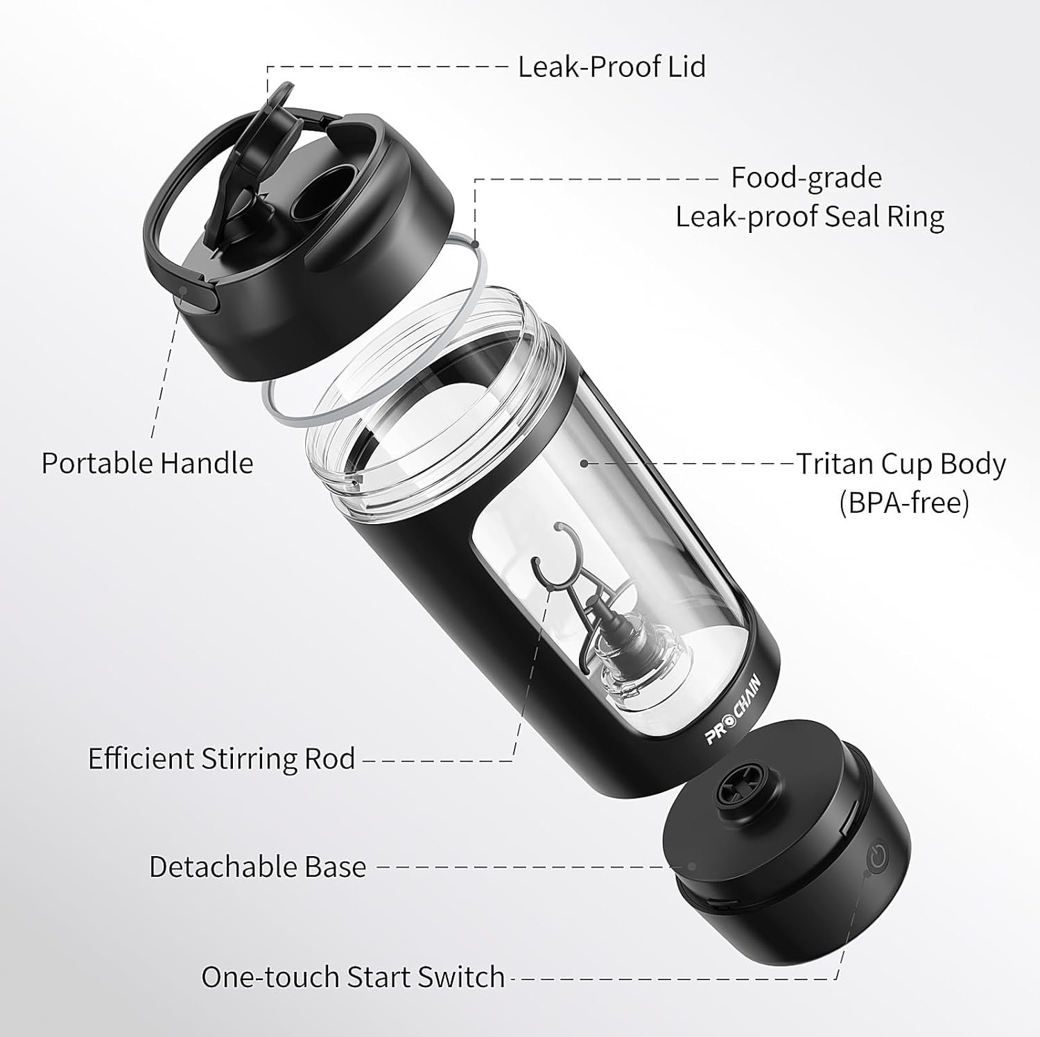 The PROCHAIN Electric Protein Shaker Bottle, USB Rechargeable Protein Shakes Mixer is a convenient, high-tech upgrade to standard shaker bottles. With its rechargeable motor, BPA-free Tritan body, separate powder storage, leak-proof lid, and portable design, it’s ideal for active lifestyles and frequent fitness fans who want smooth, consistent shakes with minimal effort — whether you’re at the gym, office, or on-the-go.