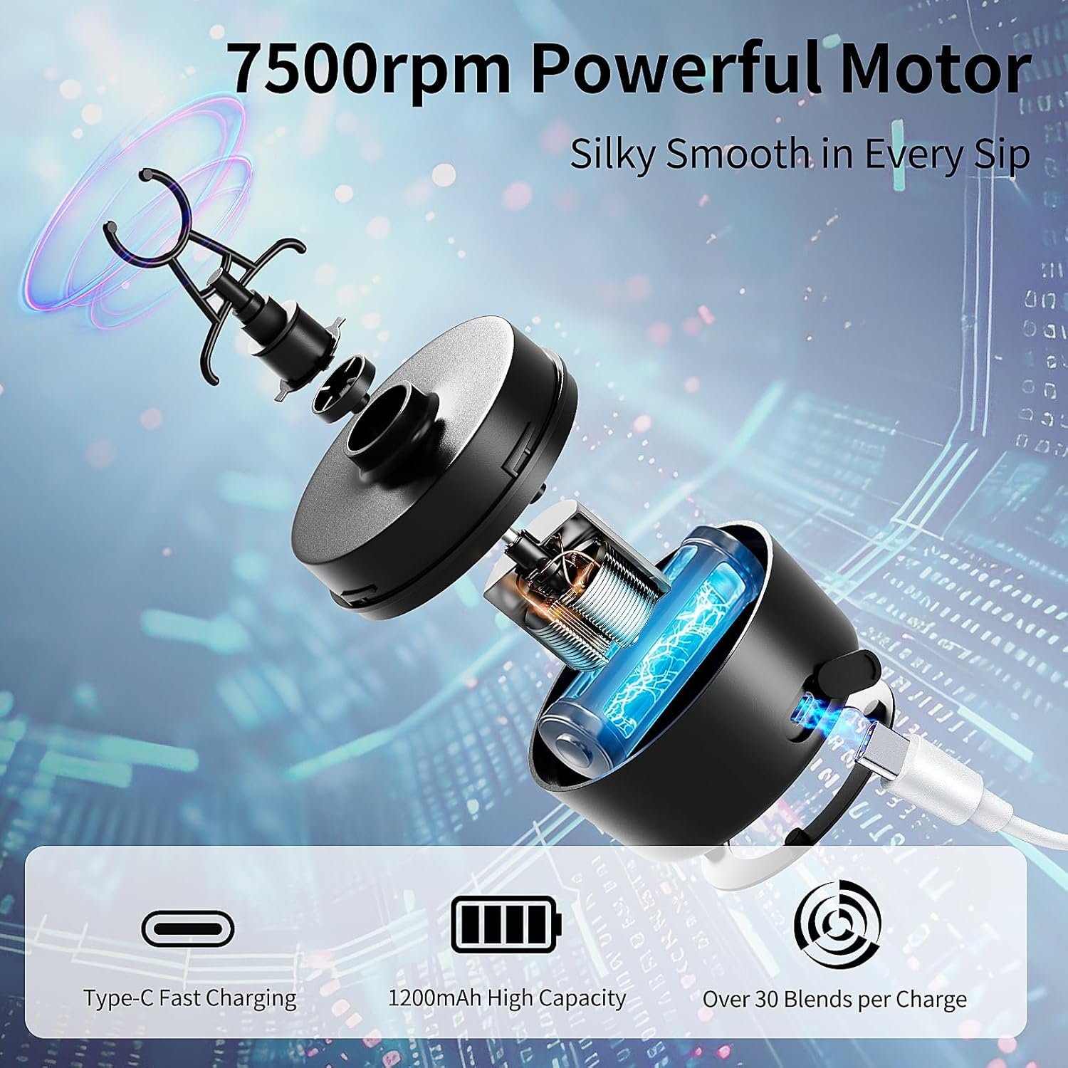 The rechargeable battery offers repeating use with quick Type-C recharges, and the powerful motor blends consistently without the splashing and mess common to traditional shake bottles.