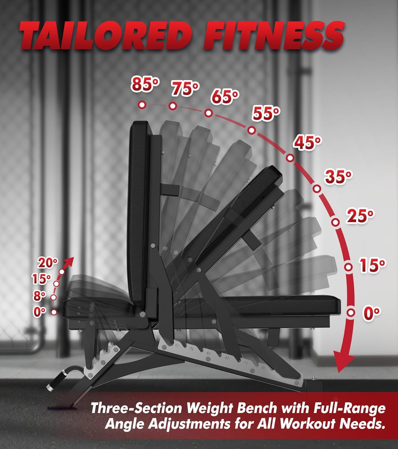 The adjustable angles give you the freedom to tailor your workouts, making it suitable for a variety of strength exercises from chest presses to shoulder work.