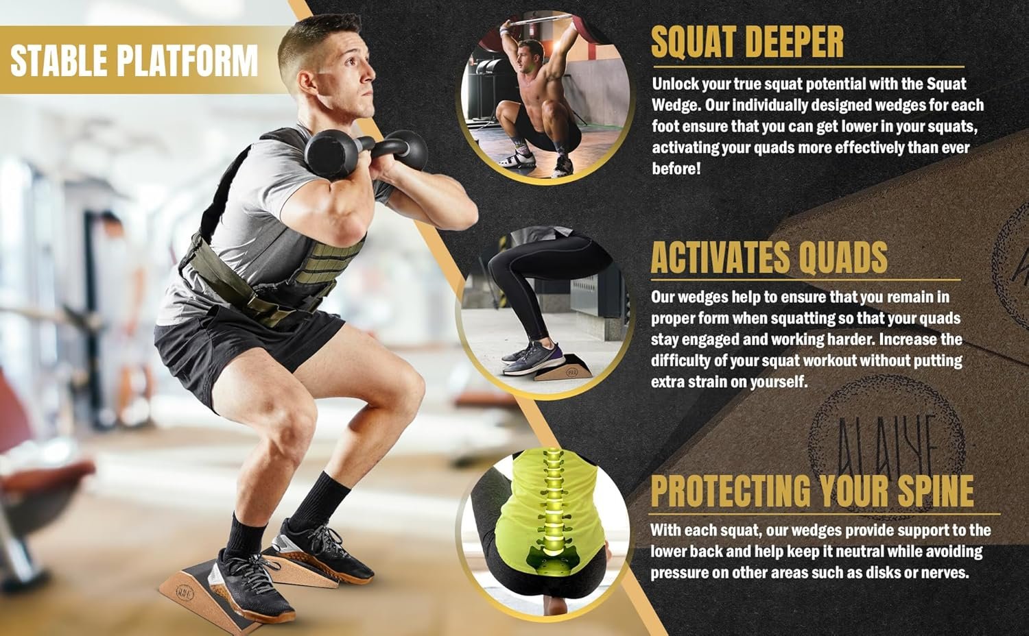 Ergonomic wedge design: Elevates heels to reduce ankle strain and promote correct squat alignment