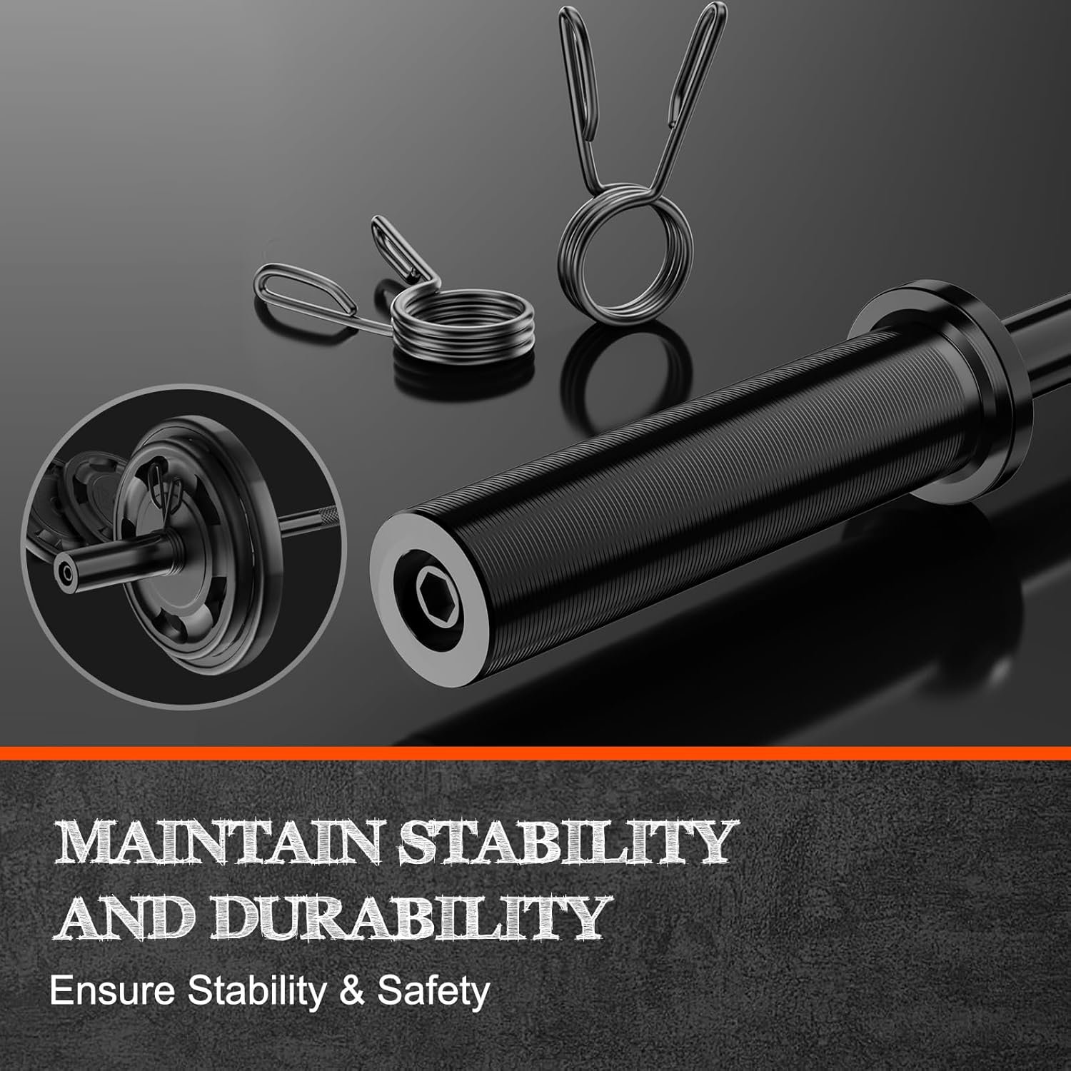 • Smaller and shorter than a standard 7 ft Olympic bar, so less ideal for some lifts or balance with heavy weights.