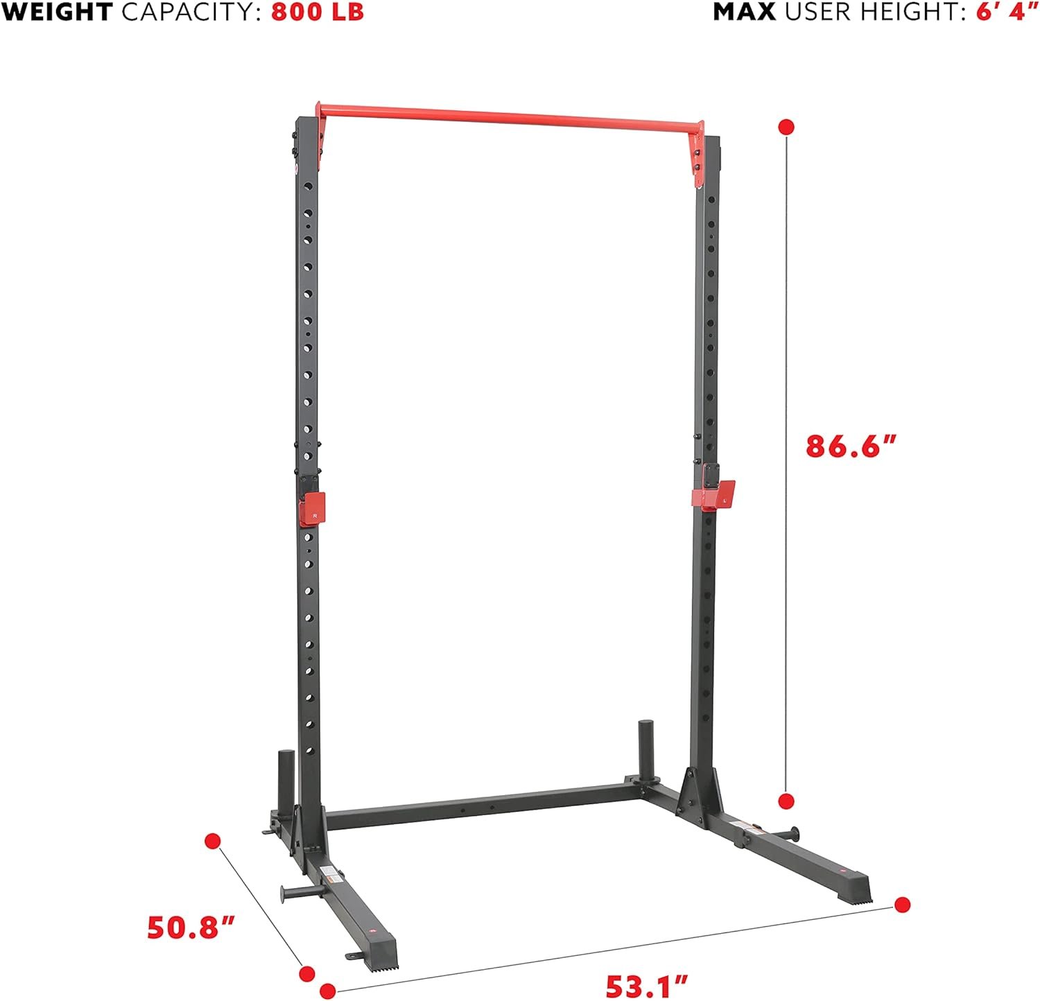 Supports up to 800 lbs of loaded weight — sturdy enough for serious squats, bench presses, and other barbell lifts when combined with a proper bench and barbell.