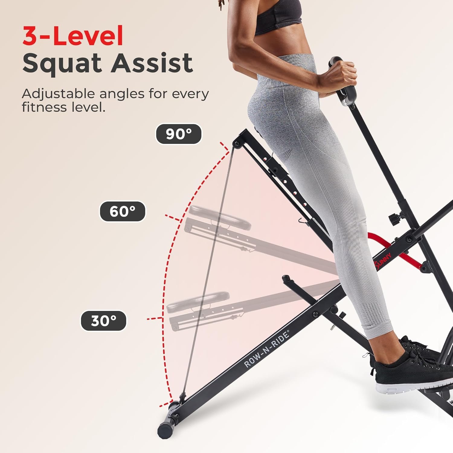 This is a compact, upright fitness trainer built by Sunny Health & Fitness that blends row-like motion with upright movement and squat/leg engagement — ideal if you want a low-impact total-body workout without traditional rowing mechanics. It’s not a standard rowing machine (push-pull rail machine), but rather a multi-motion trainer that targets similar muscle groups through an upright, standing movement pattern.