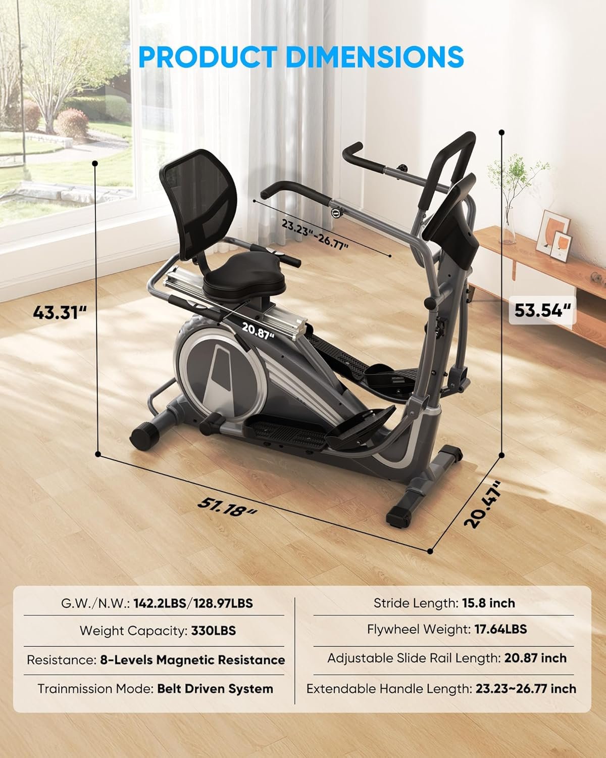 Stride Length: ~14 inches — comfortable for many users, though may feel short for very tall individuals.